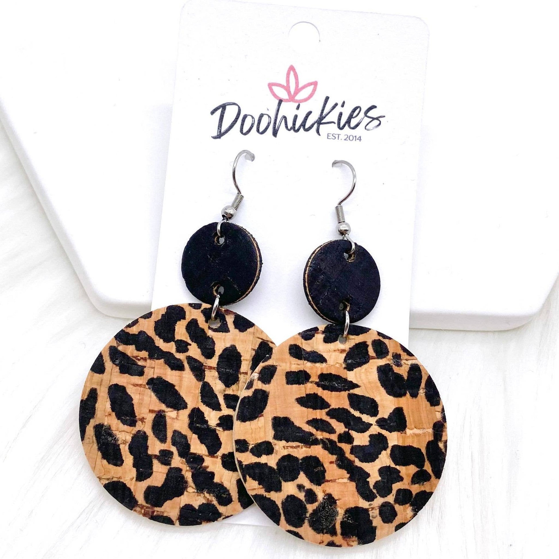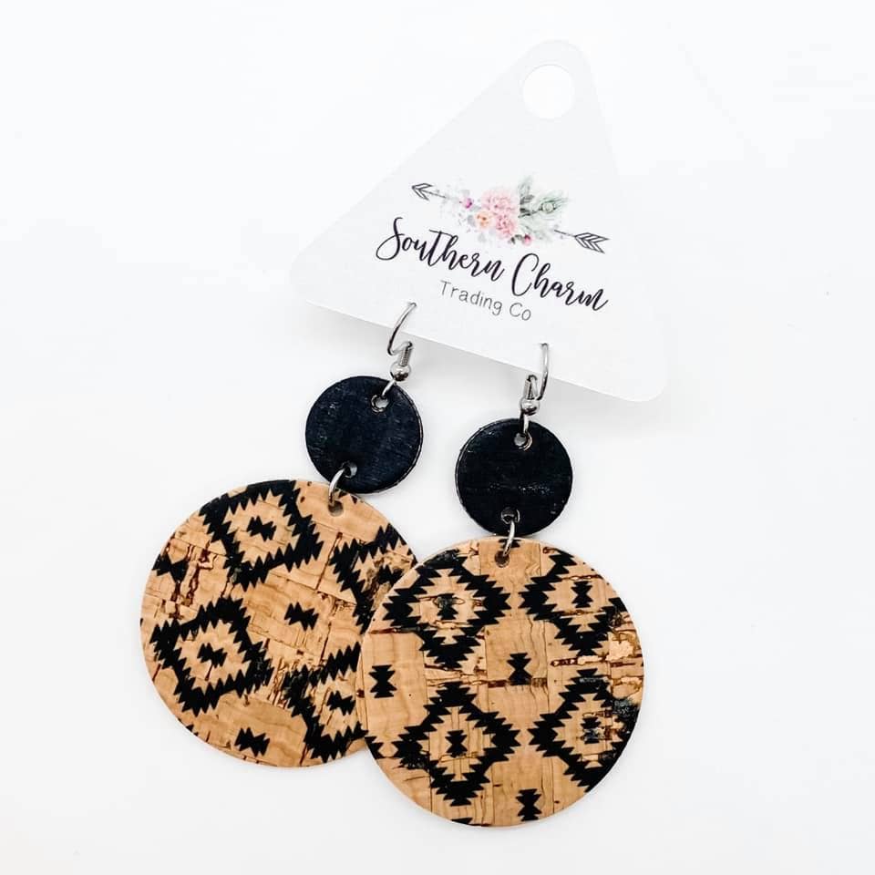 2.5" Black & Natural Piggyback Corkies -Earrings: Aztec & Leopard Doohickie