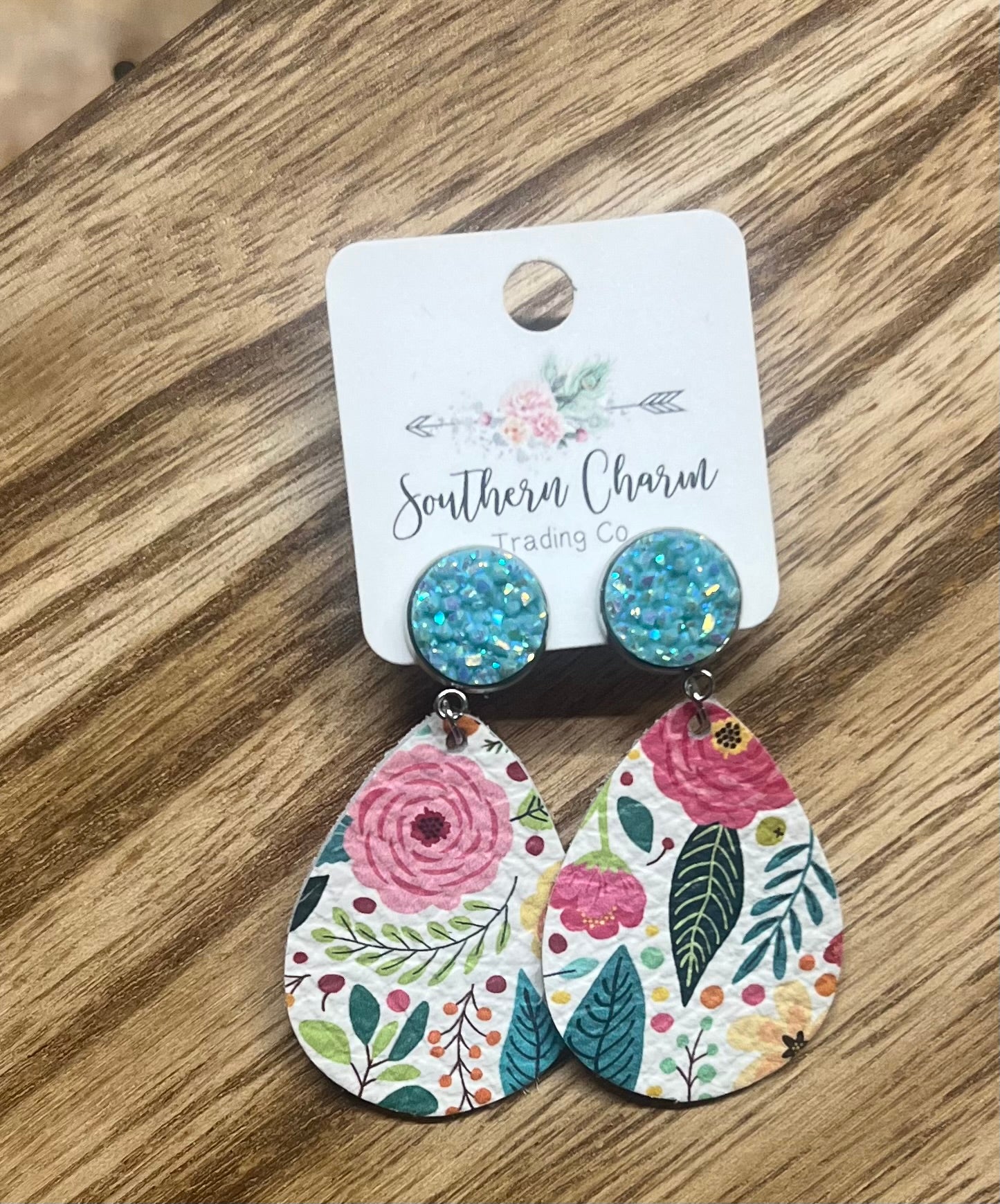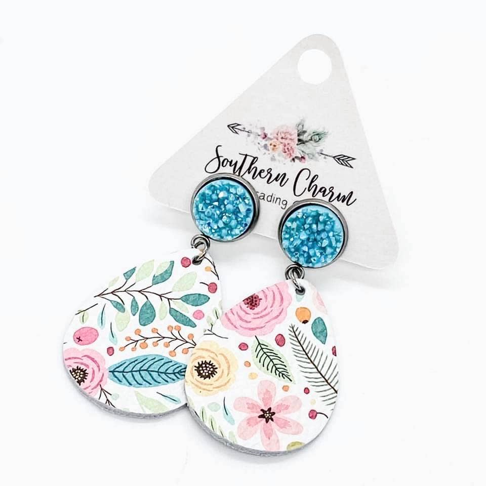 2" Robin Egg Shimmer & Spring Floral Dangles (leather) Doohickie