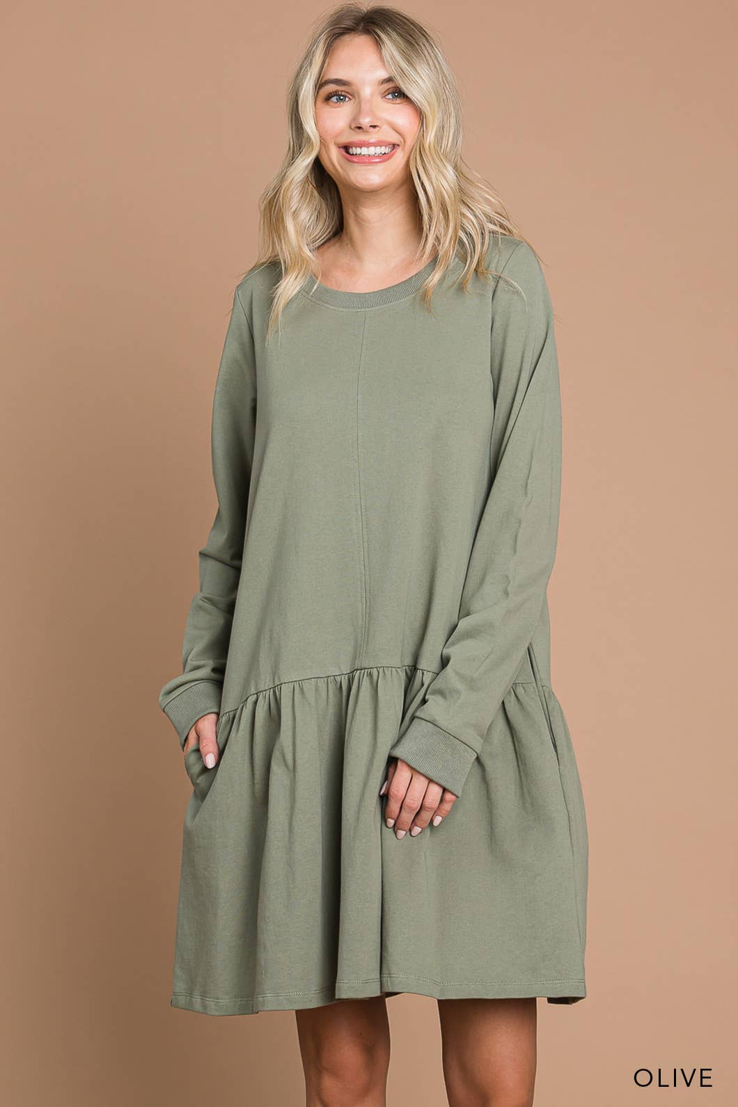Experience the comfort and style of Cotton Bleu's Women's Washed Cotton French Terry Dress. This dress is a great addition to any wardrobe. Its casual yet chic design aligns perfectly with the latest trends and retro collections. Enjoy the quality and affordable price point that Cotton Bleu prides itself on. Ideal for all boutiques, this dress is a testament to our mission of providing unique and quality basics with a twist.