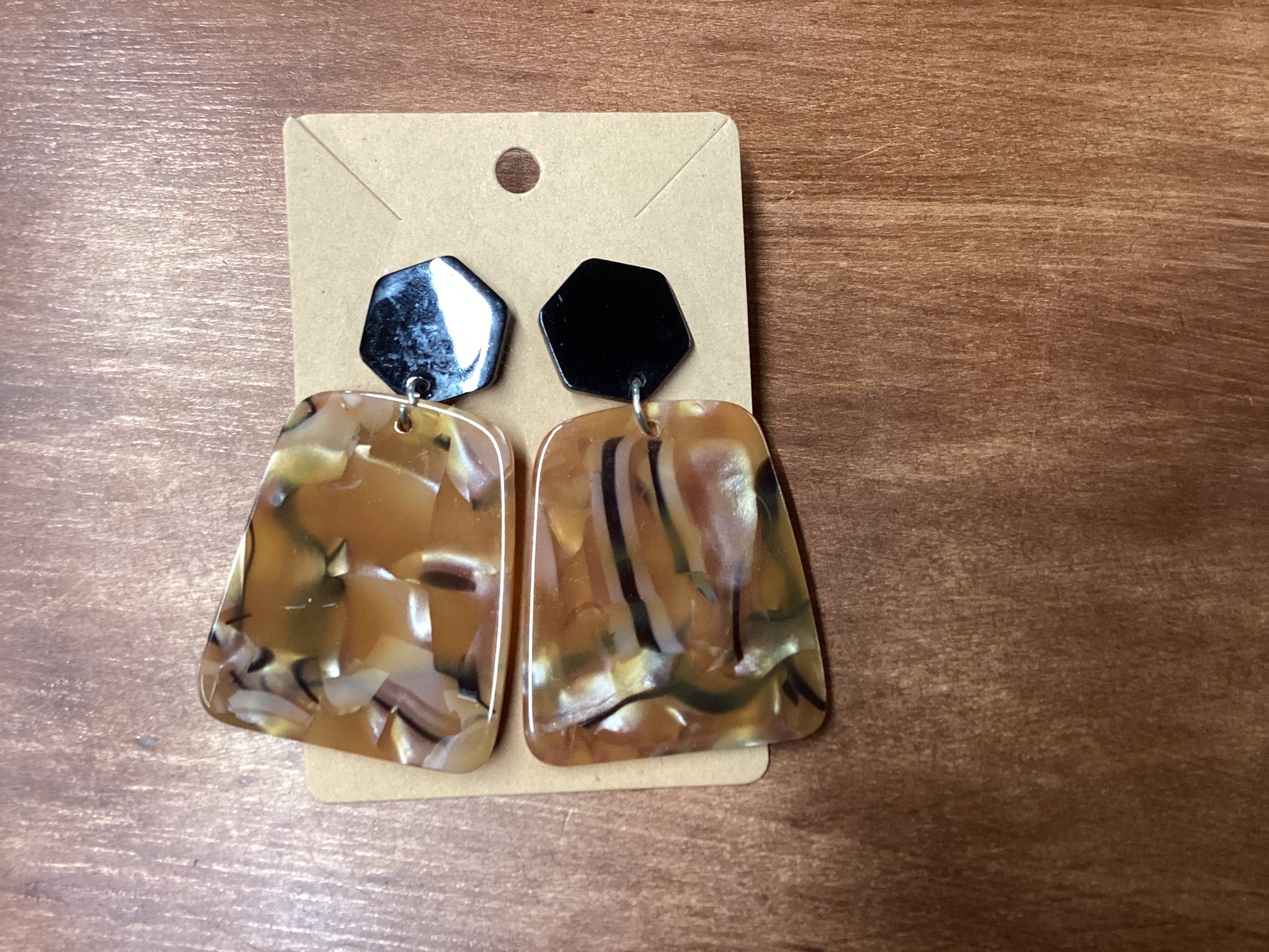 Black octagon w/brown pearl earrings