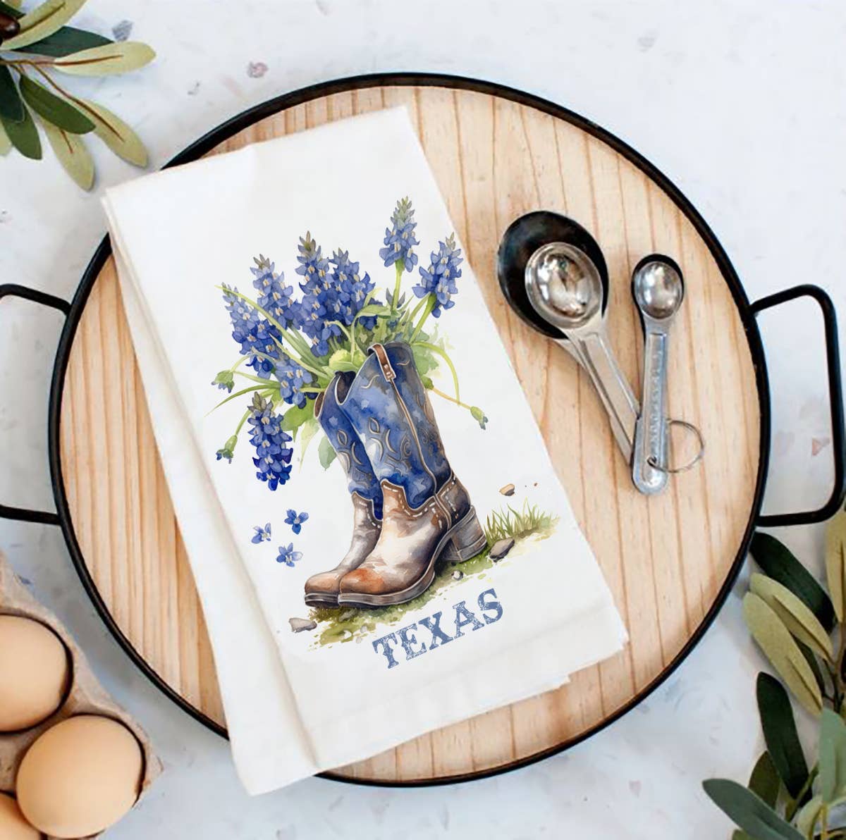 Bluebonnet Cowboy Boots Texas Flour Sack Tea Towel