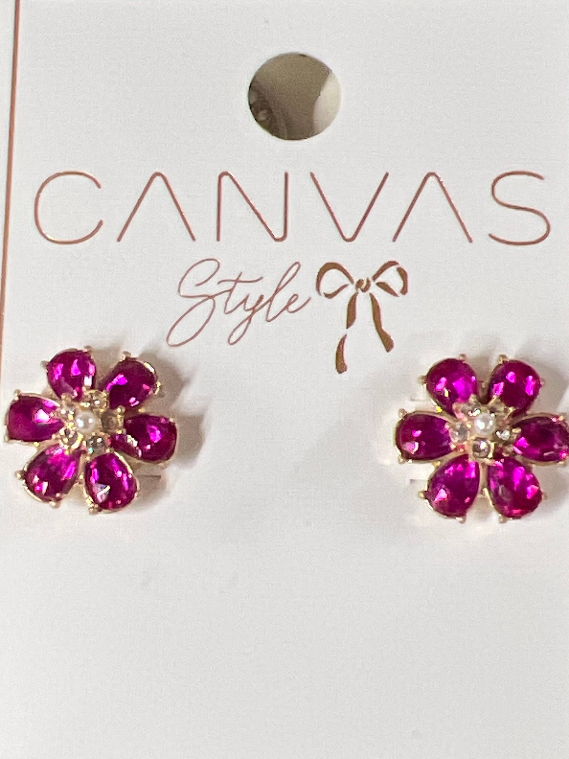 Brooke Rhinestone & Pearl Flower Stud Earrings canvas