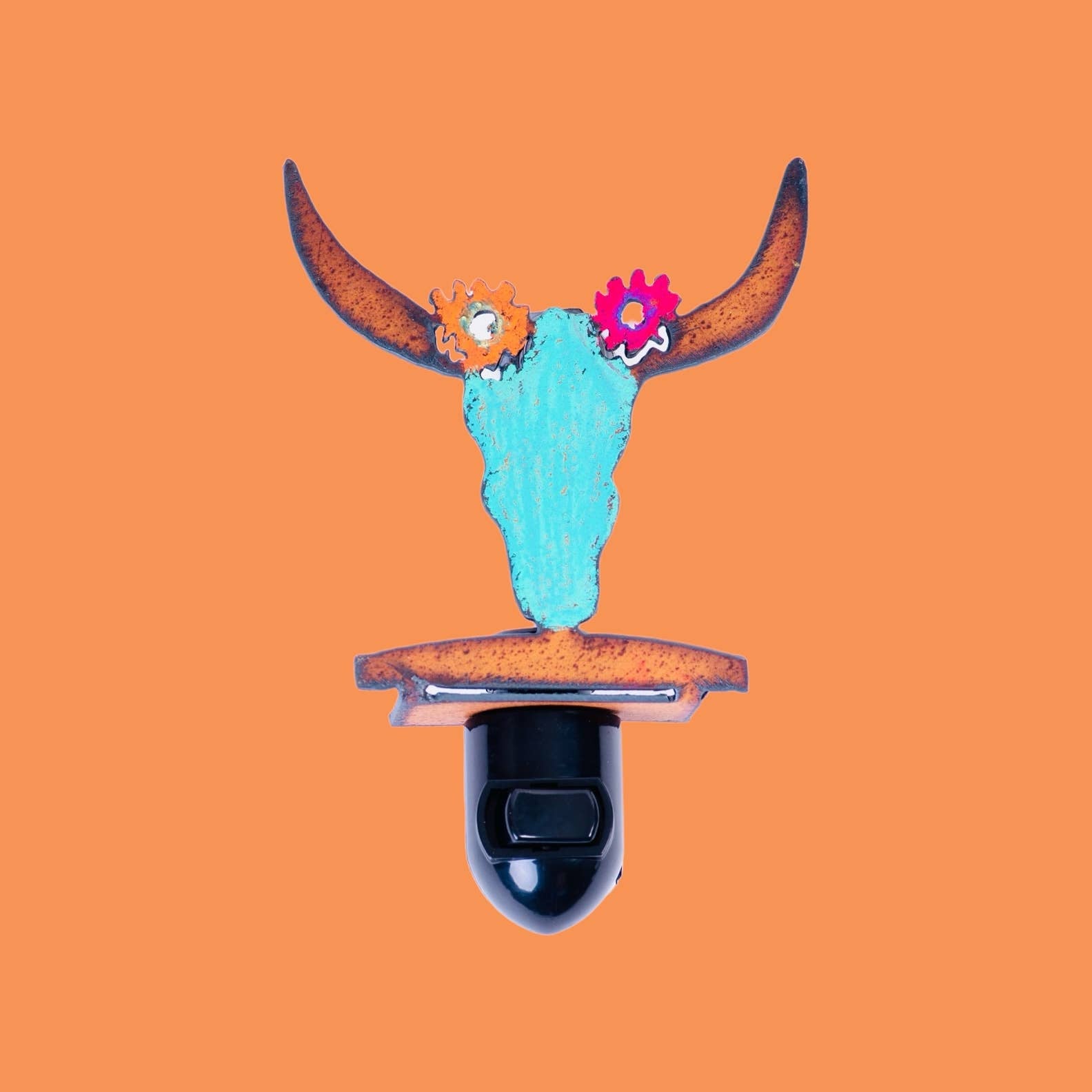 Buffalo UL Nightlight that is colorfully painted metal. Brighten up your space with our delightful recycled painted night light, made with care in the USA. Featuring vibrant and cheerful designs, this unique metal night light adds a splash of happiness to any room. With an easy-to-use on/off switch, it offers convenient control over your lighting. Each night light comes complete with a bulb, so it's ready to light up your life right away. Made from recycled materials, this eco-friendly night light combines sustainability with joy, making it a truly special addition to your home décor.
