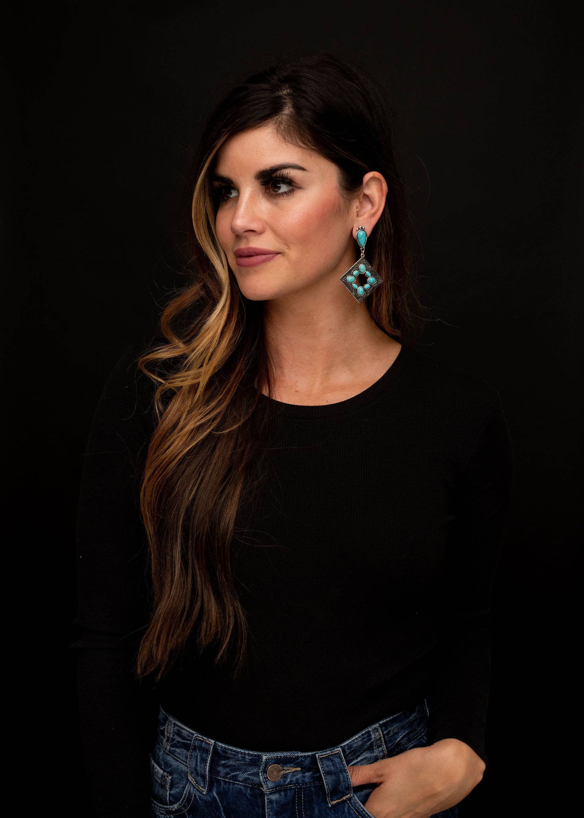Burnished Silver Stamped Diamond Shaped Post Earring w/ Turq West Co