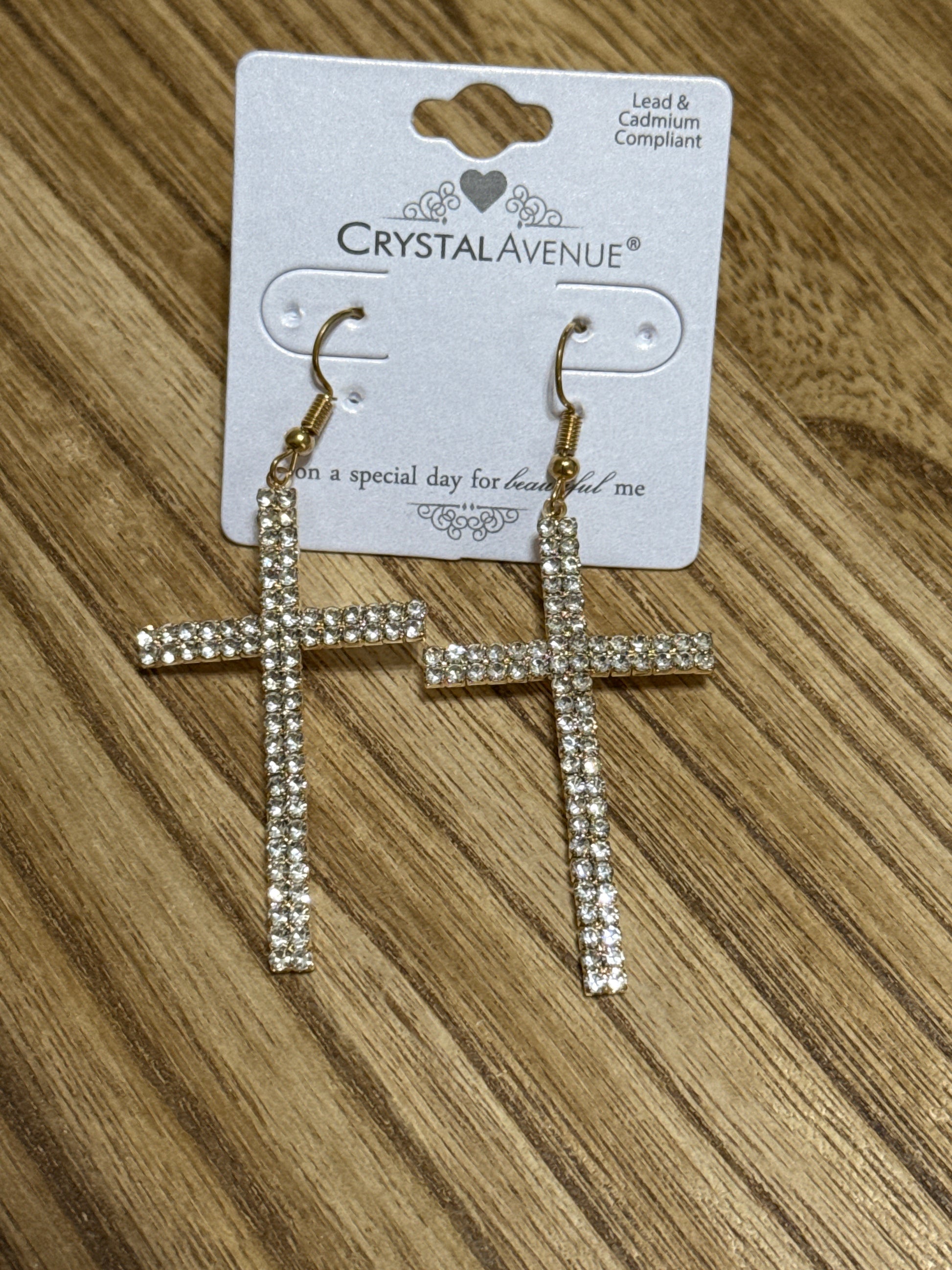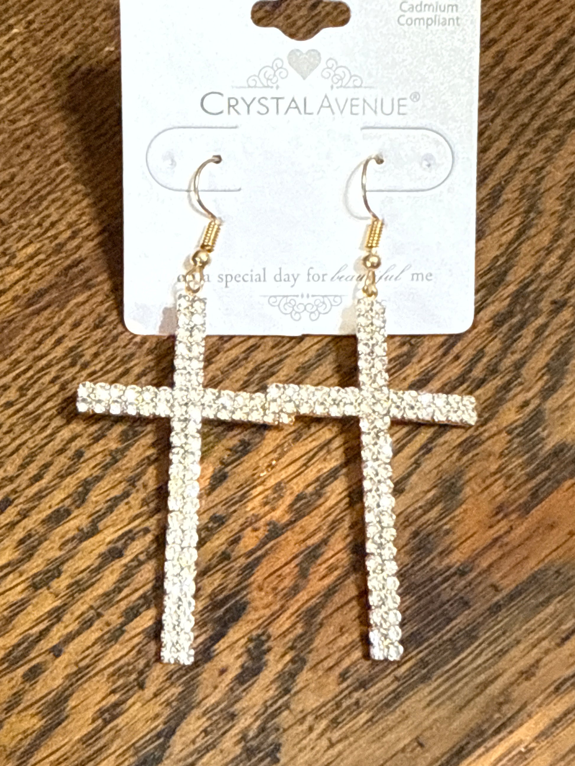 Crystal and Gold Cross Dangle Earrings