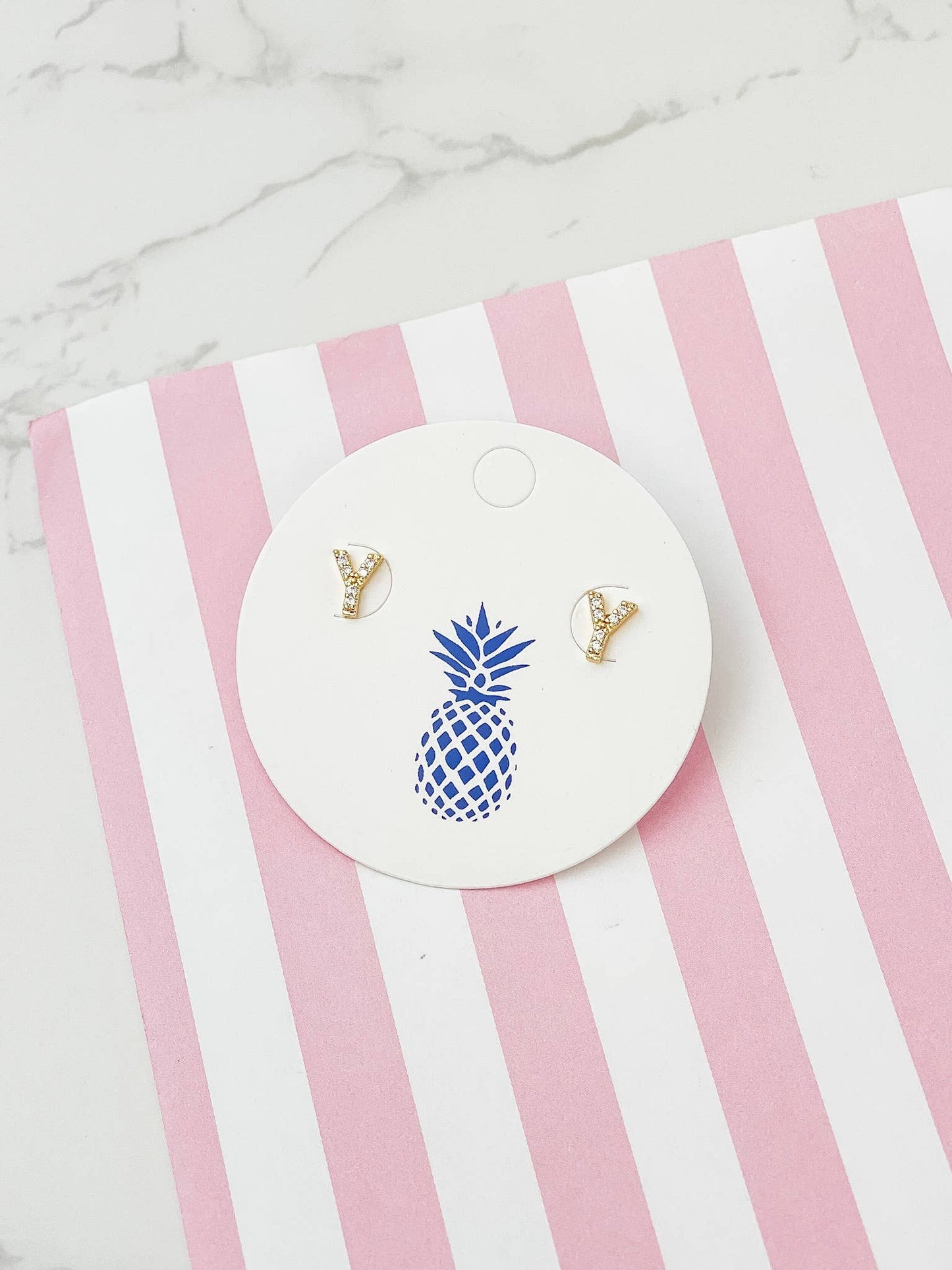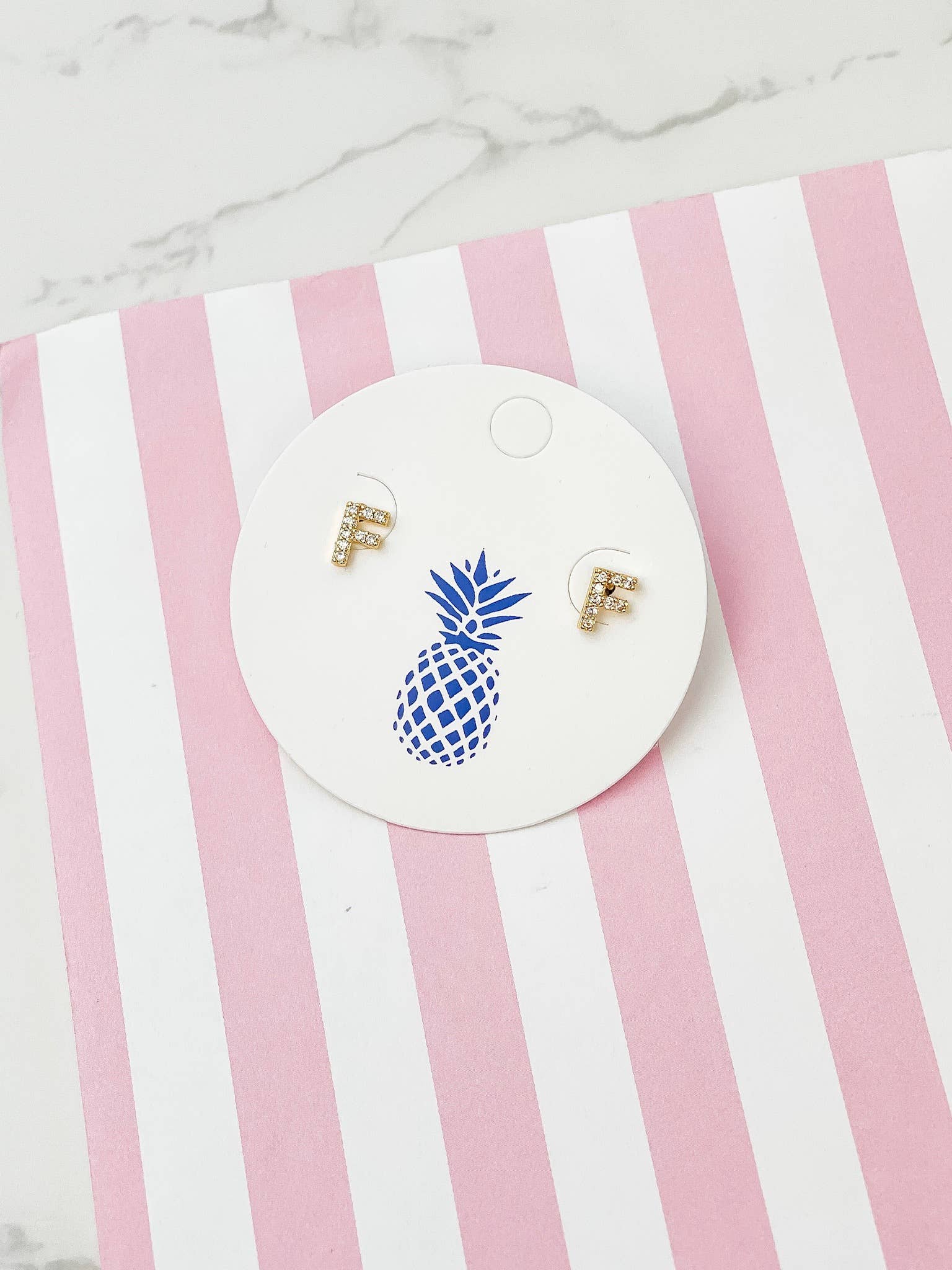 Cubic Zirconia Initial Stud Earrings- Gold: Prep Obsessed