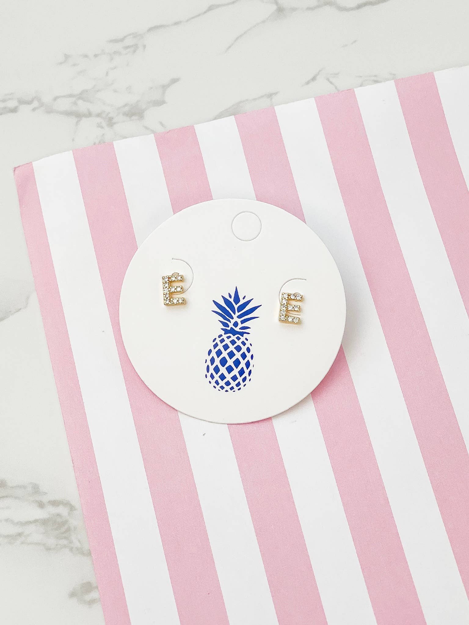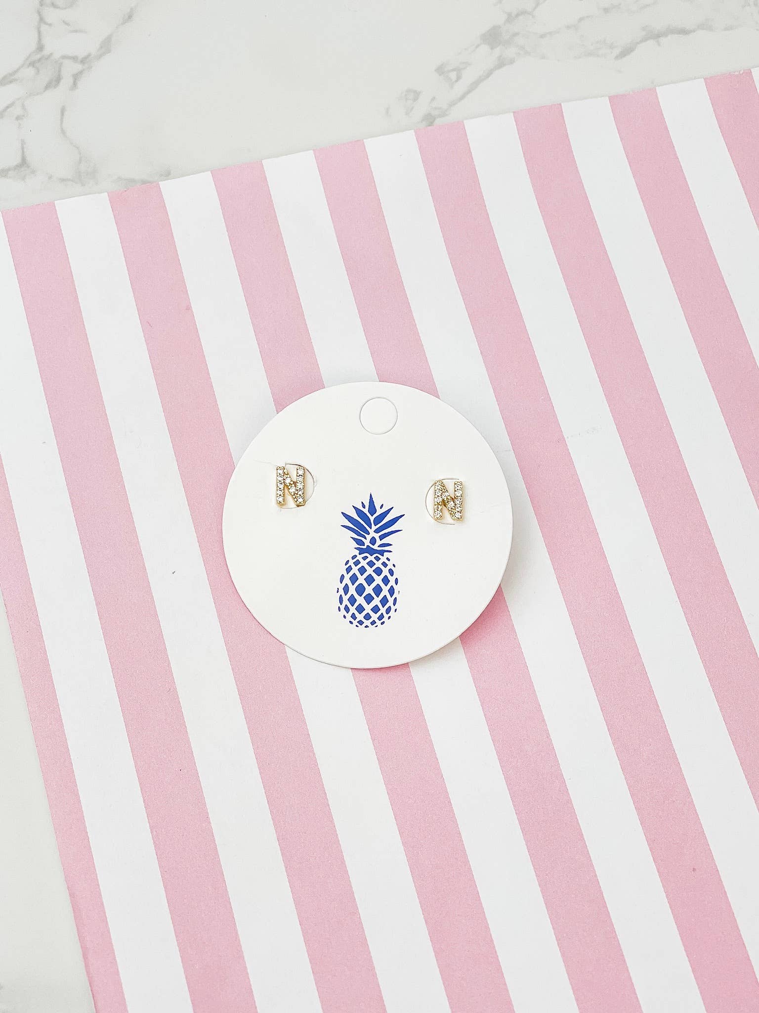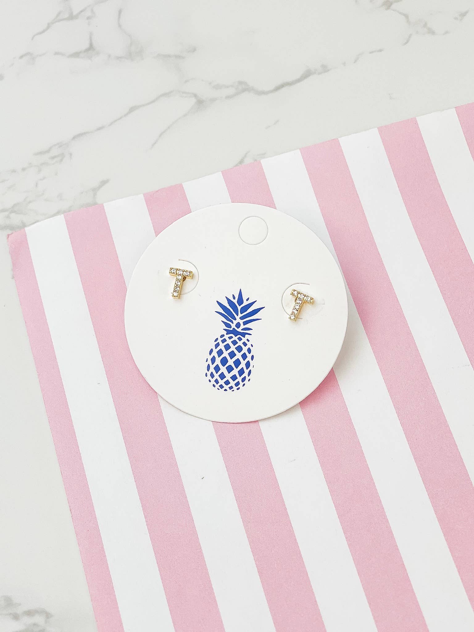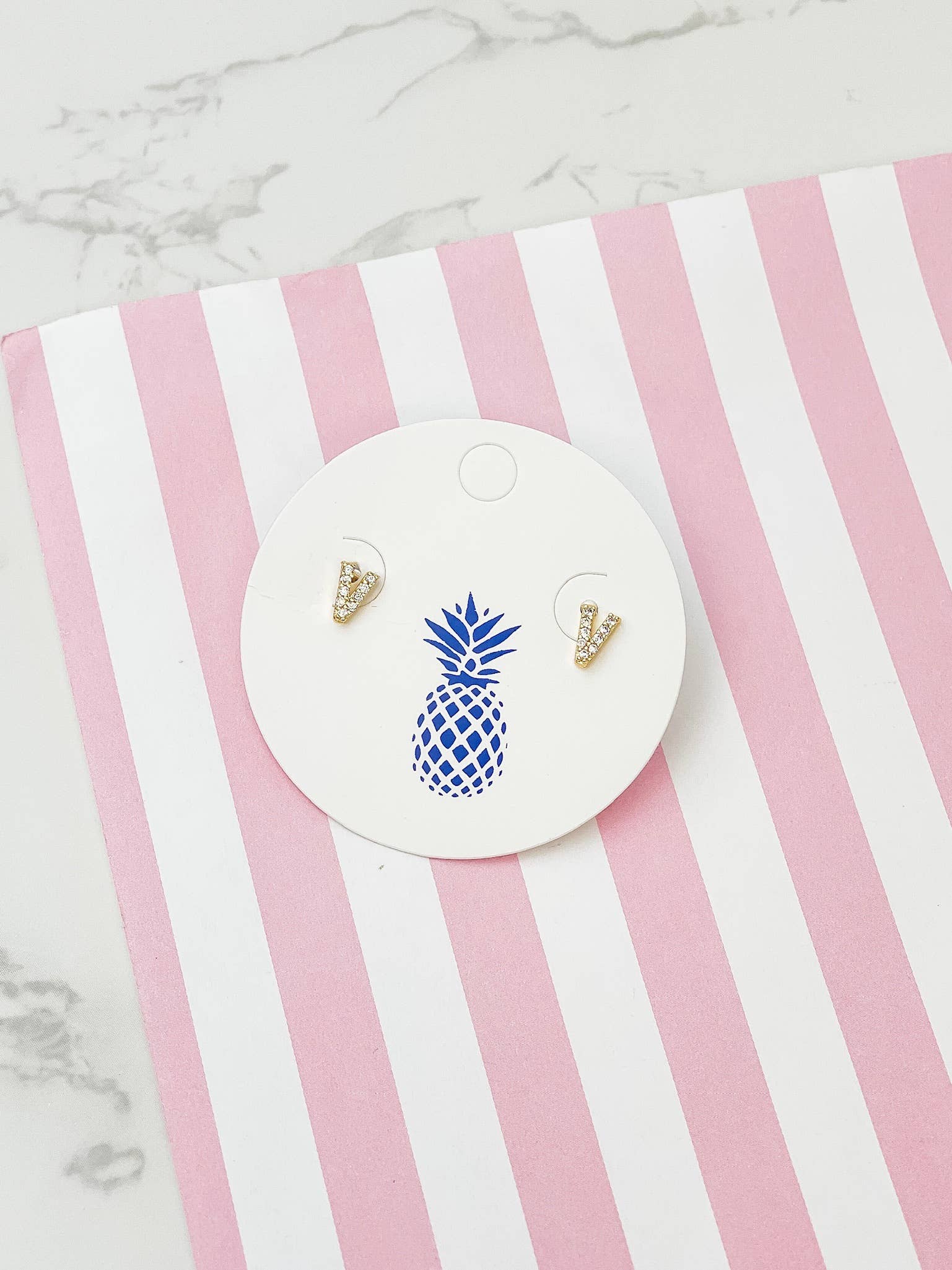 Cubic Zirconia Initial Stud Earrings- Gold: Y