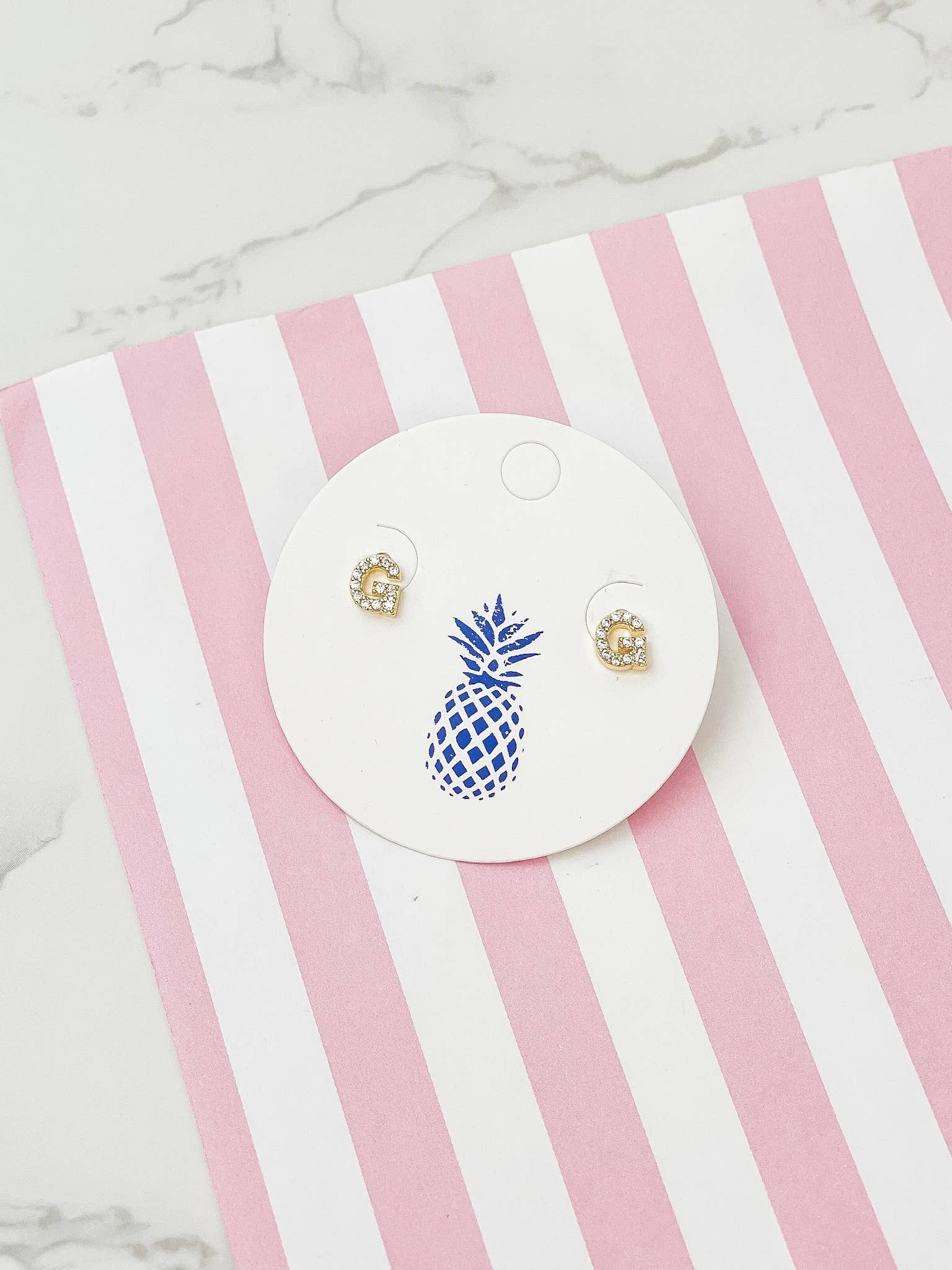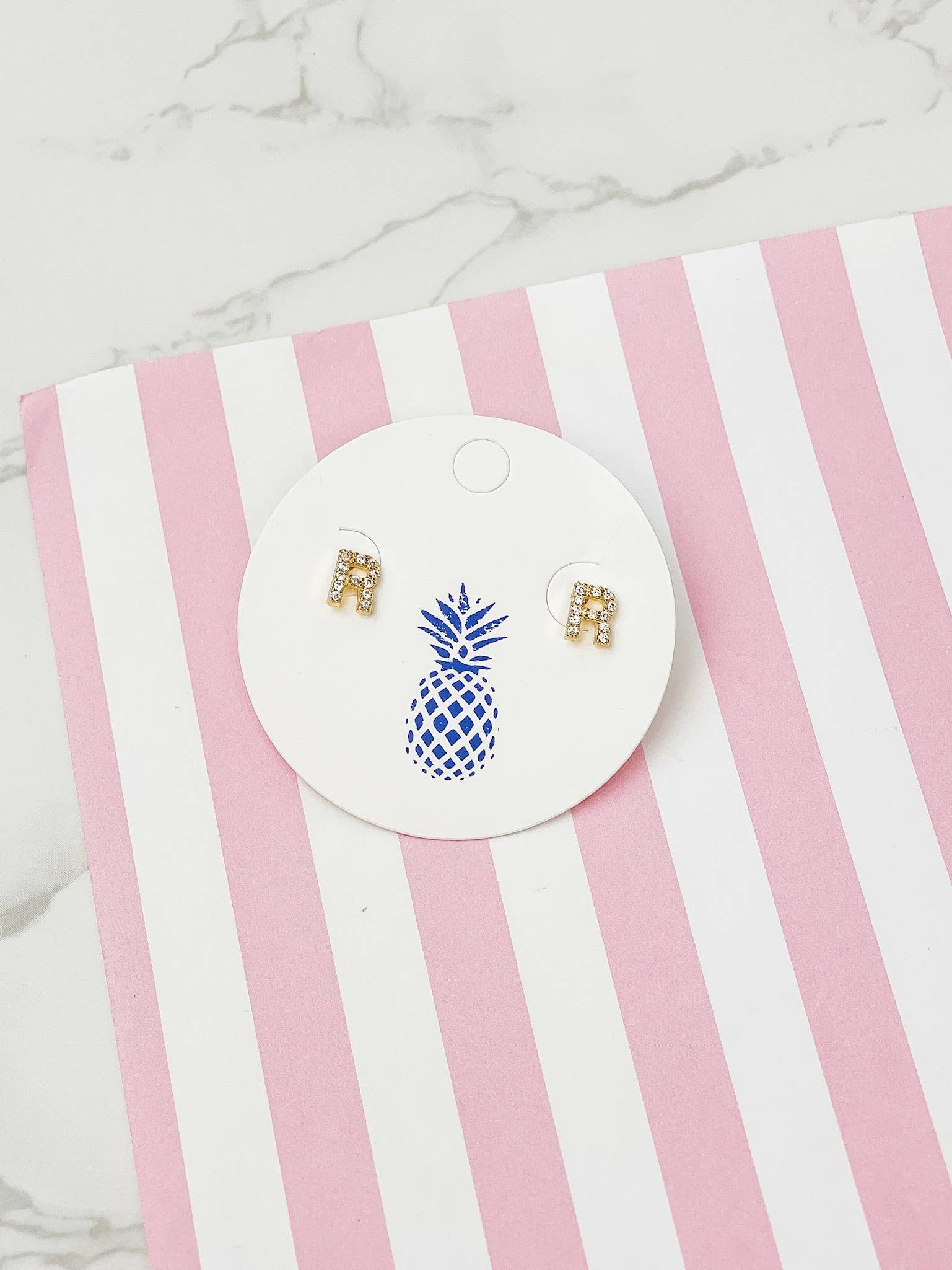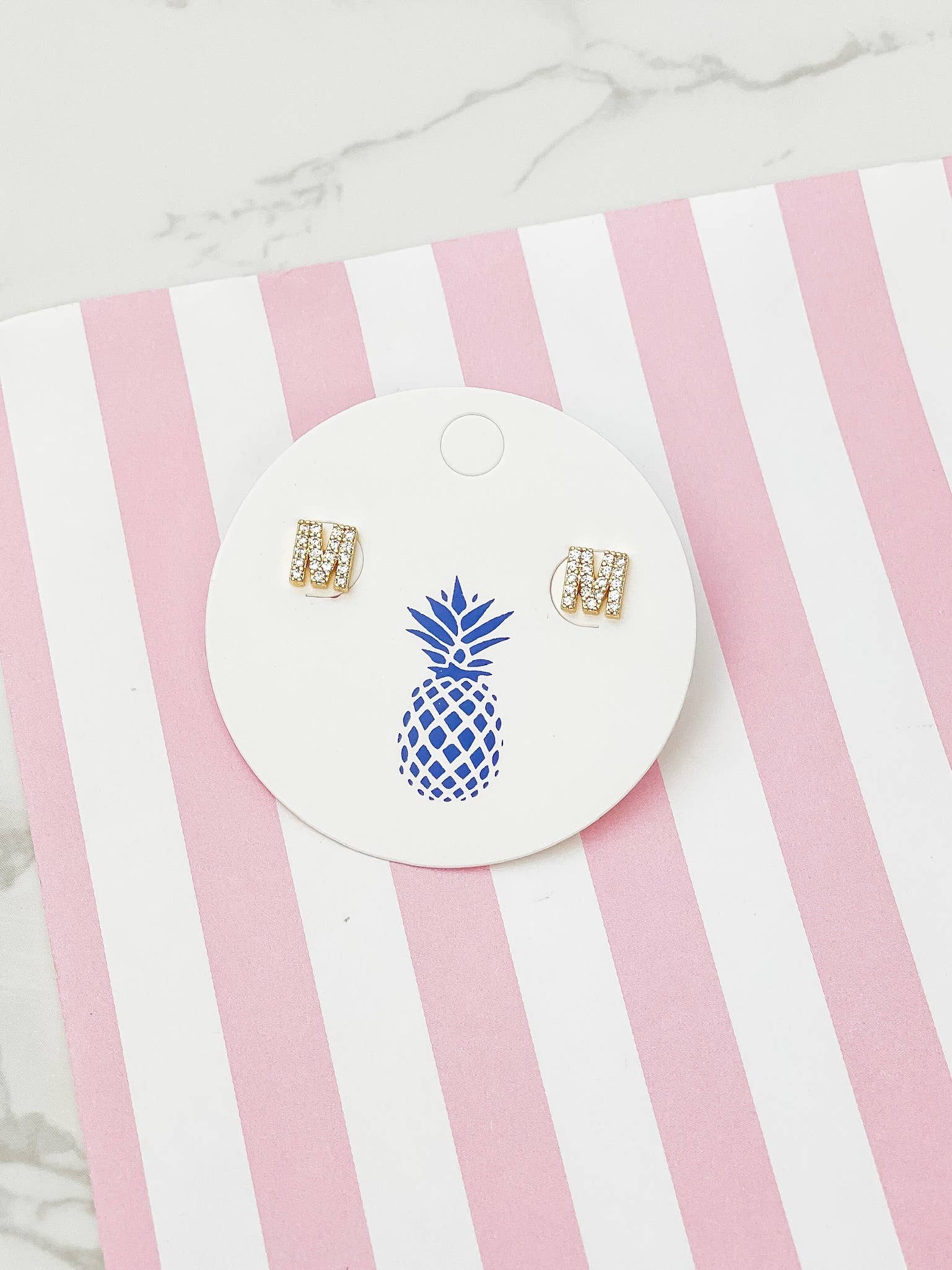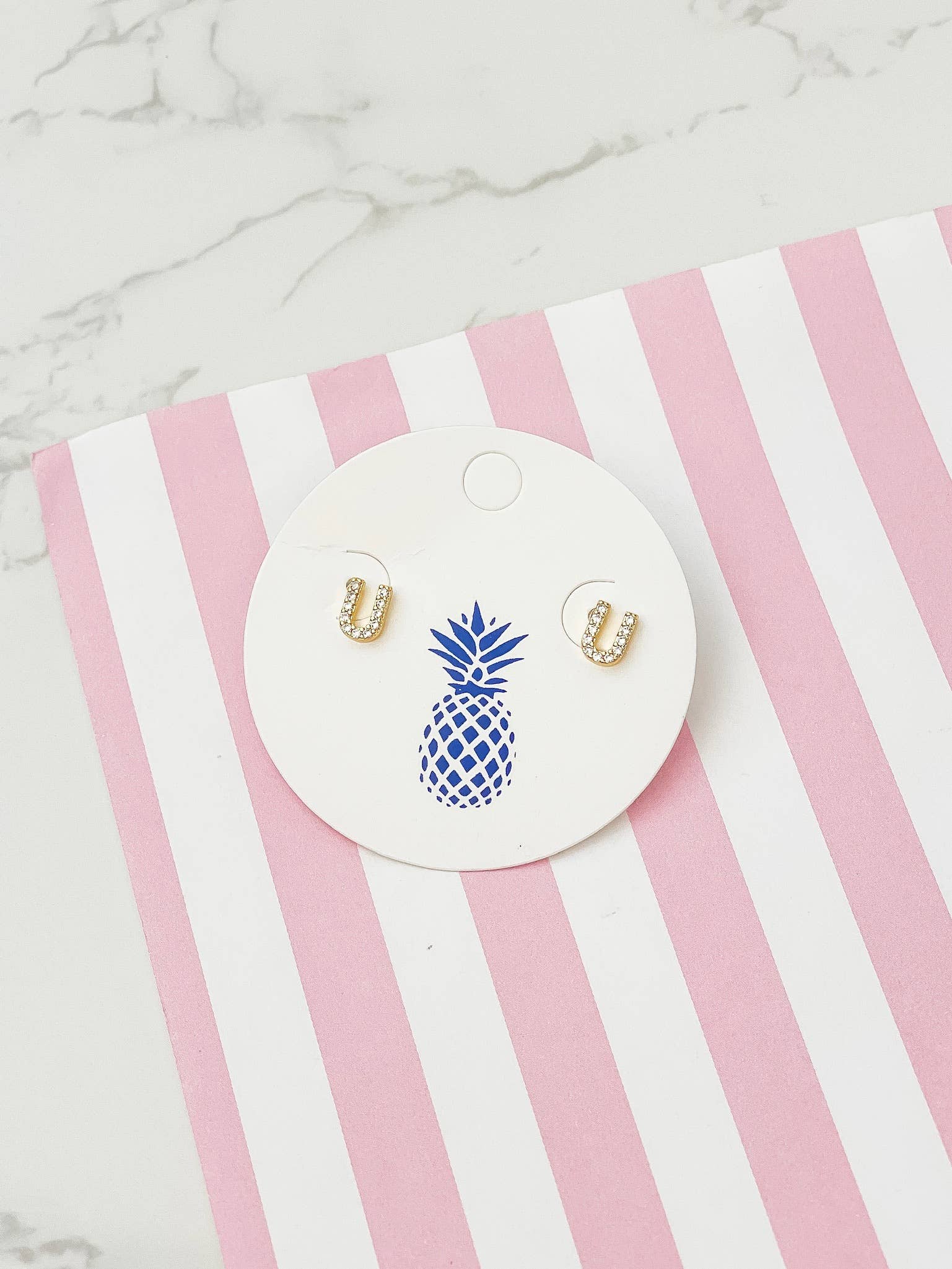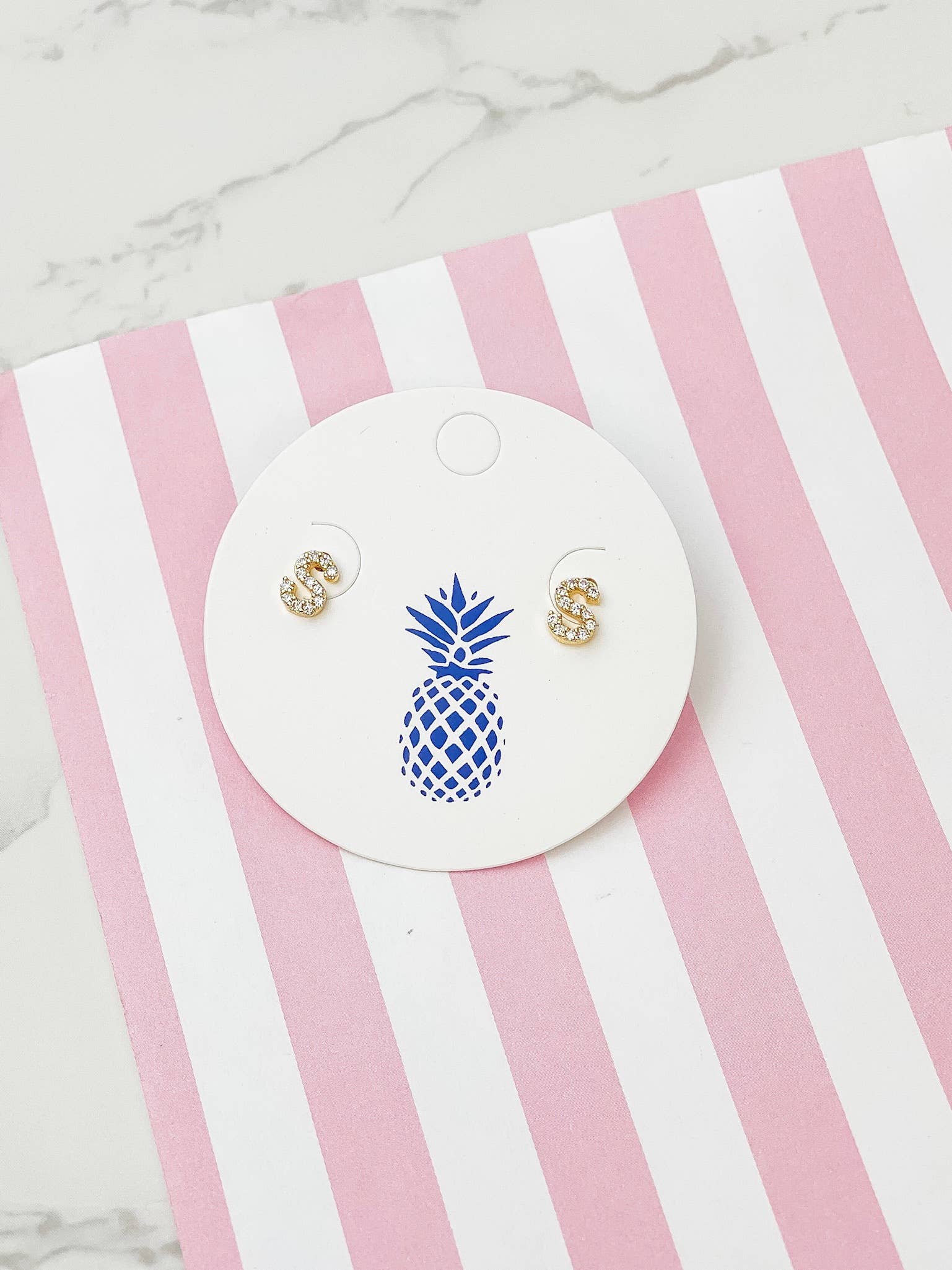 Cubic Zirconia Initial Stud Earrings- Gold: Y