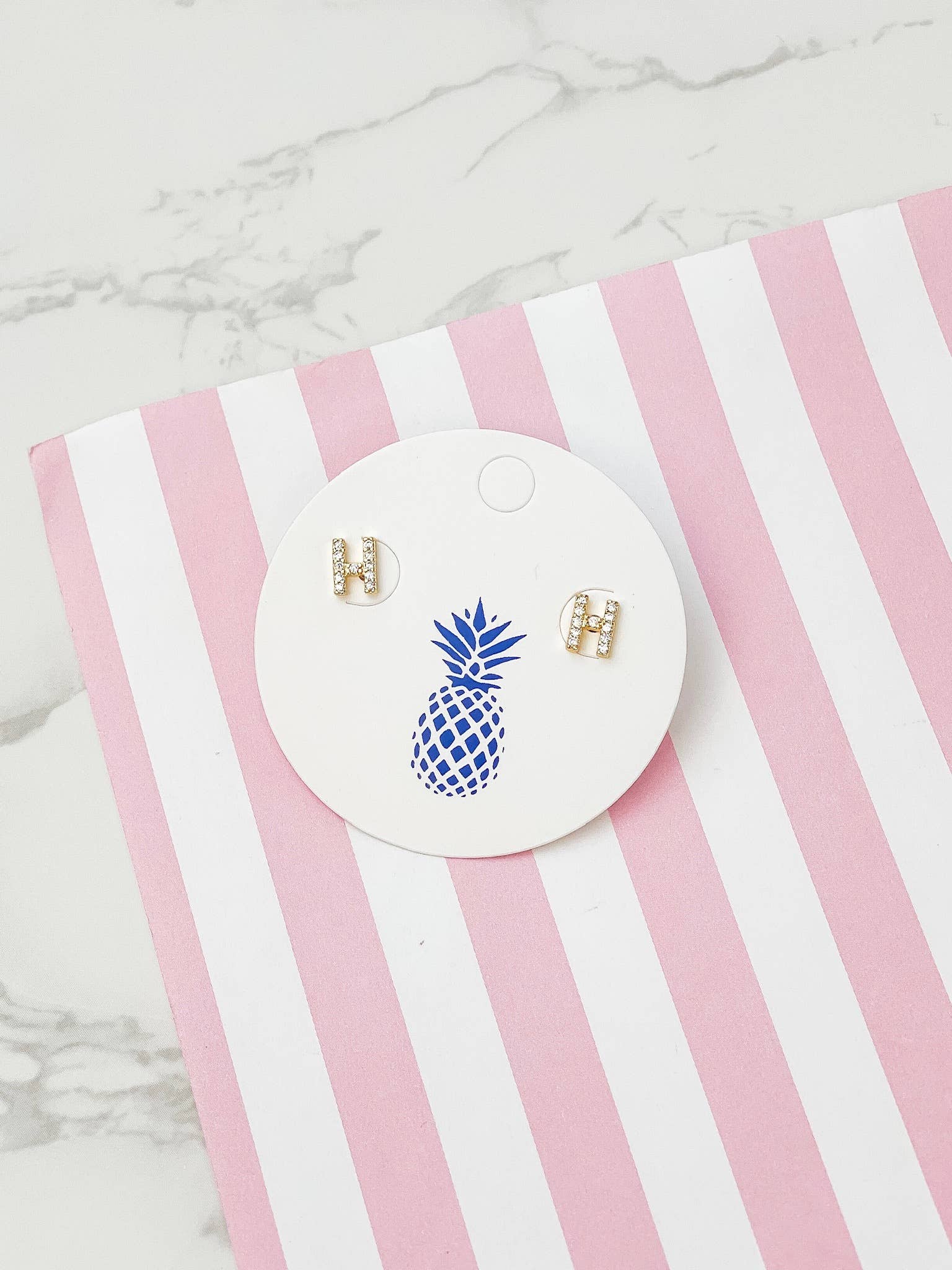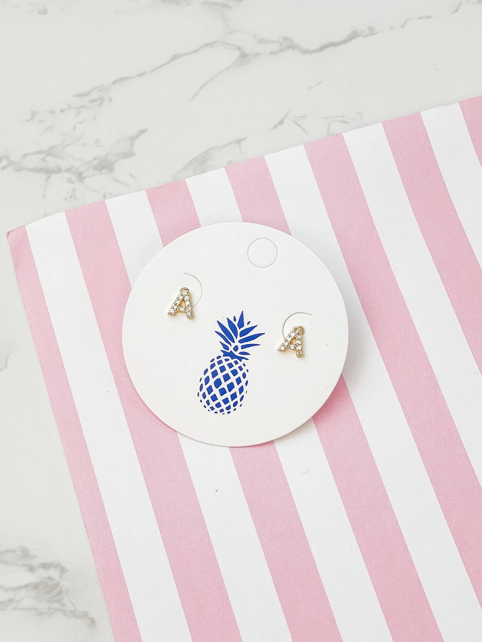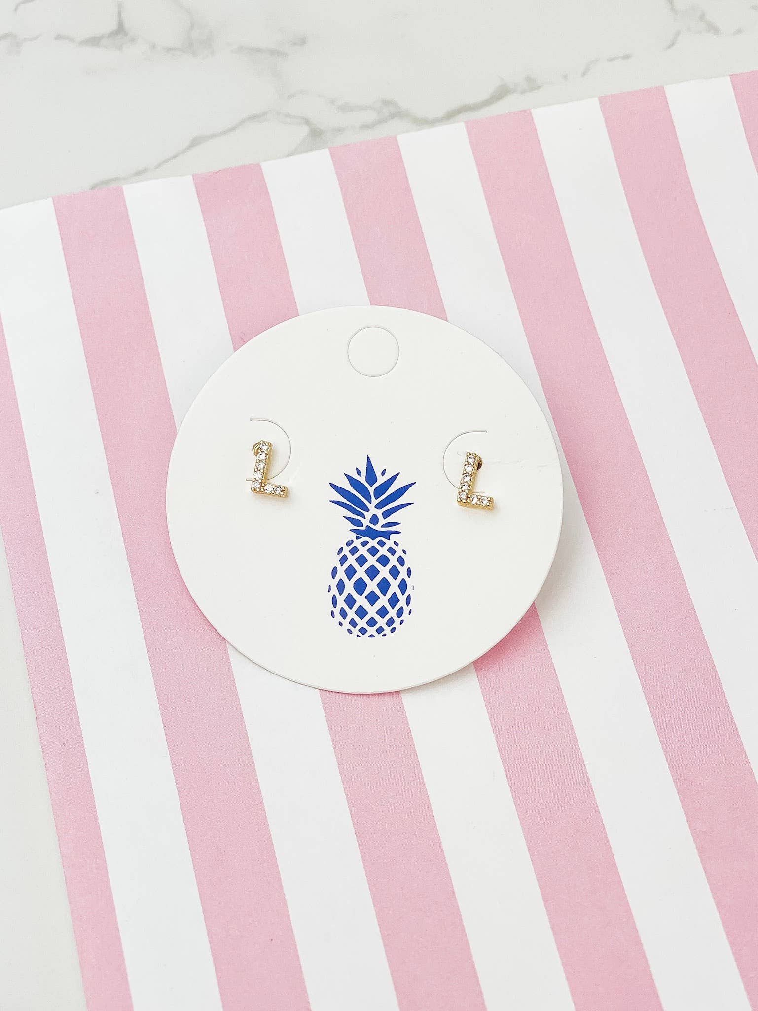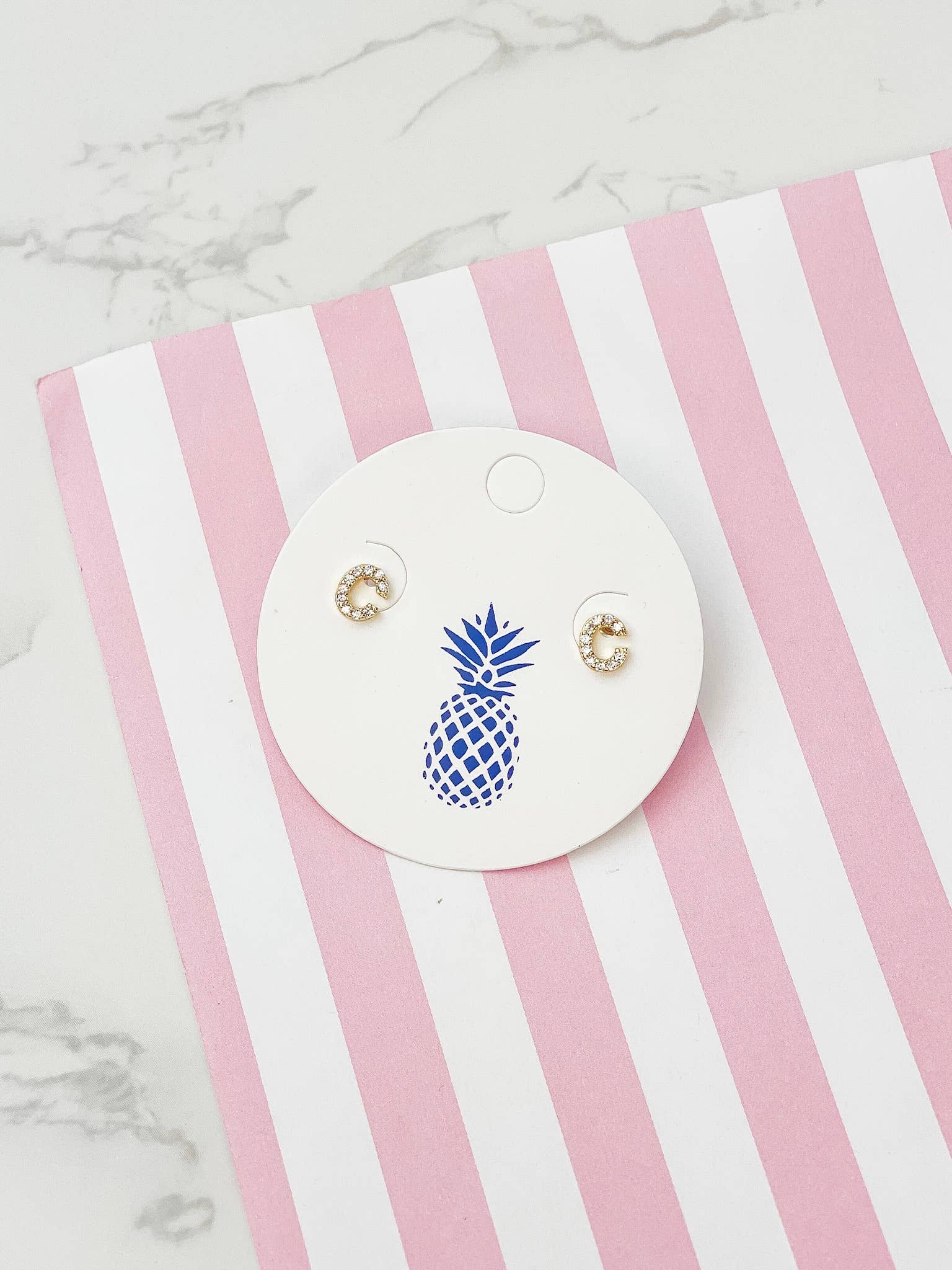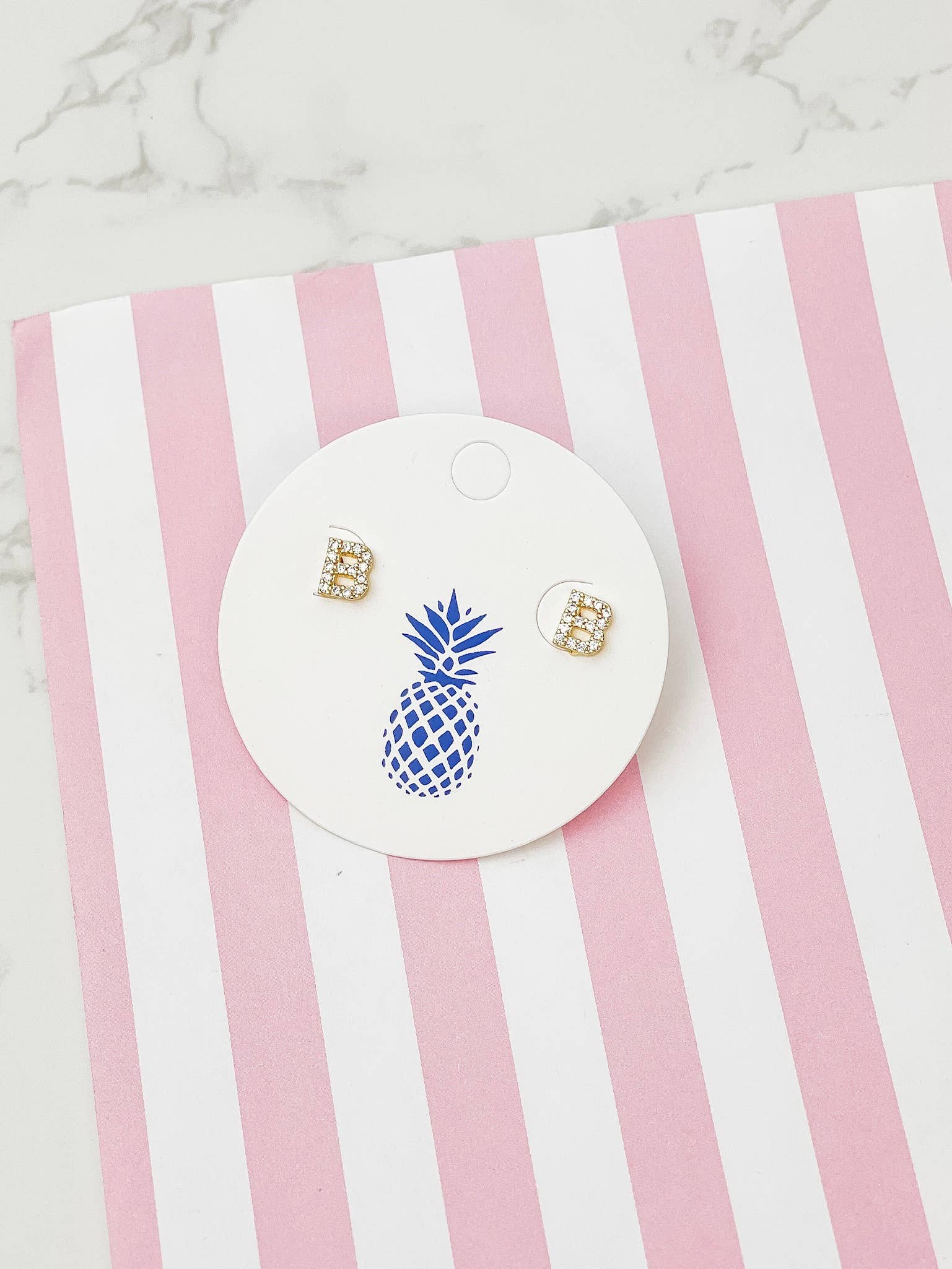 From the house of Prep Obsessed Wholesale, we bring to you our Cubic Zirconia Initial Stud Earrings in Gold. These studs, crafted from sterling silver, are adorned with cubic zirconia for that extra sparkle. With a comfortable size of 0.25", these earrings make a subtle yet impactful style statement. Perfect for adding a personalized touch to your ensemble, these earrings are a must-have addition to your jewelry collection.
