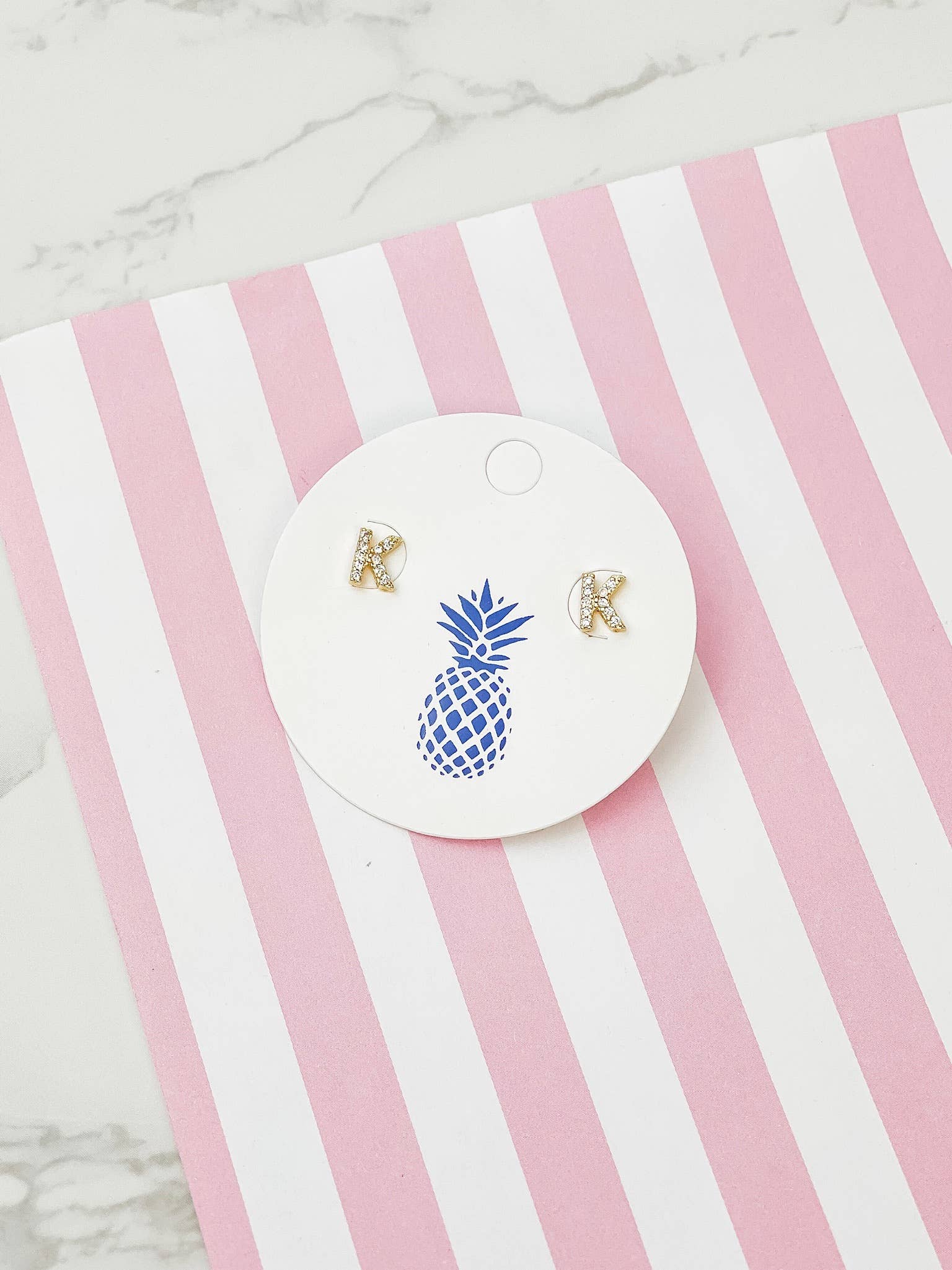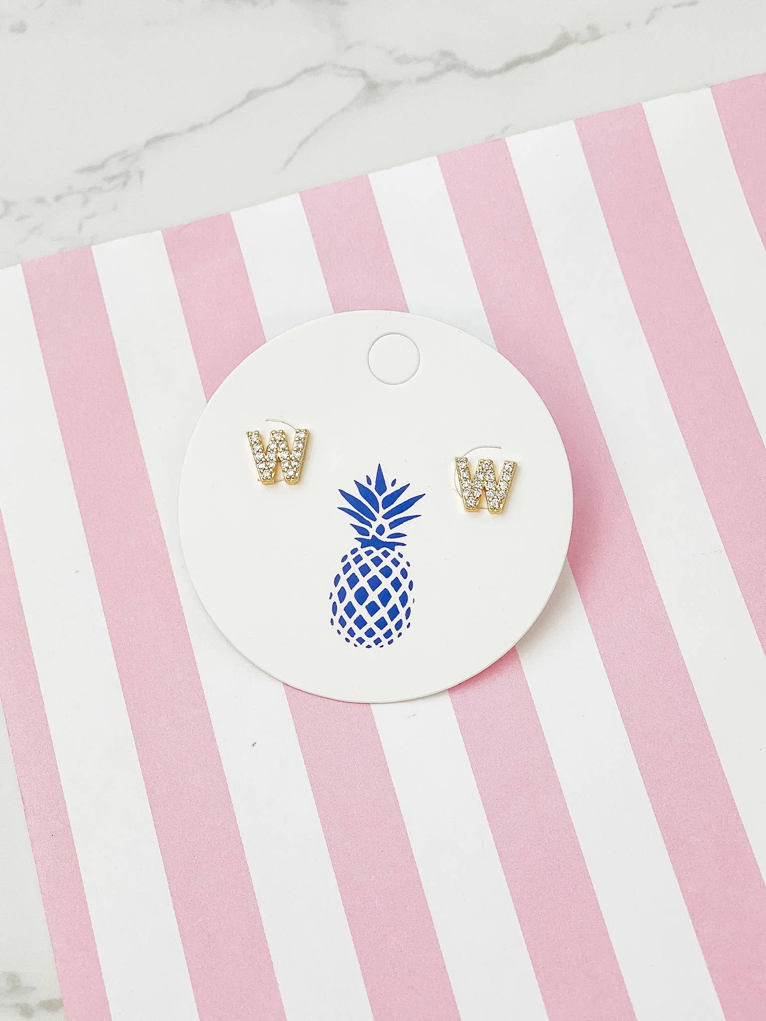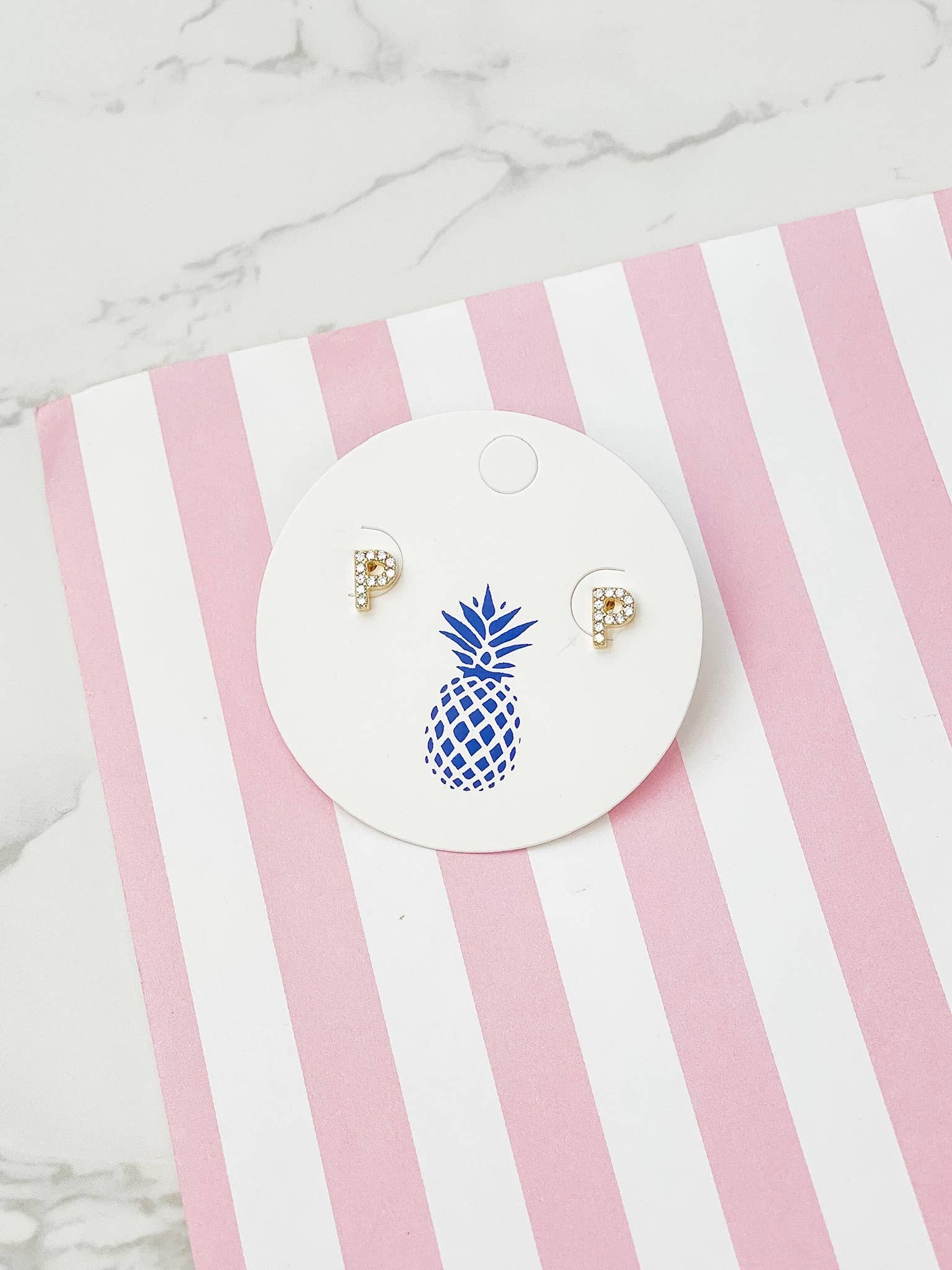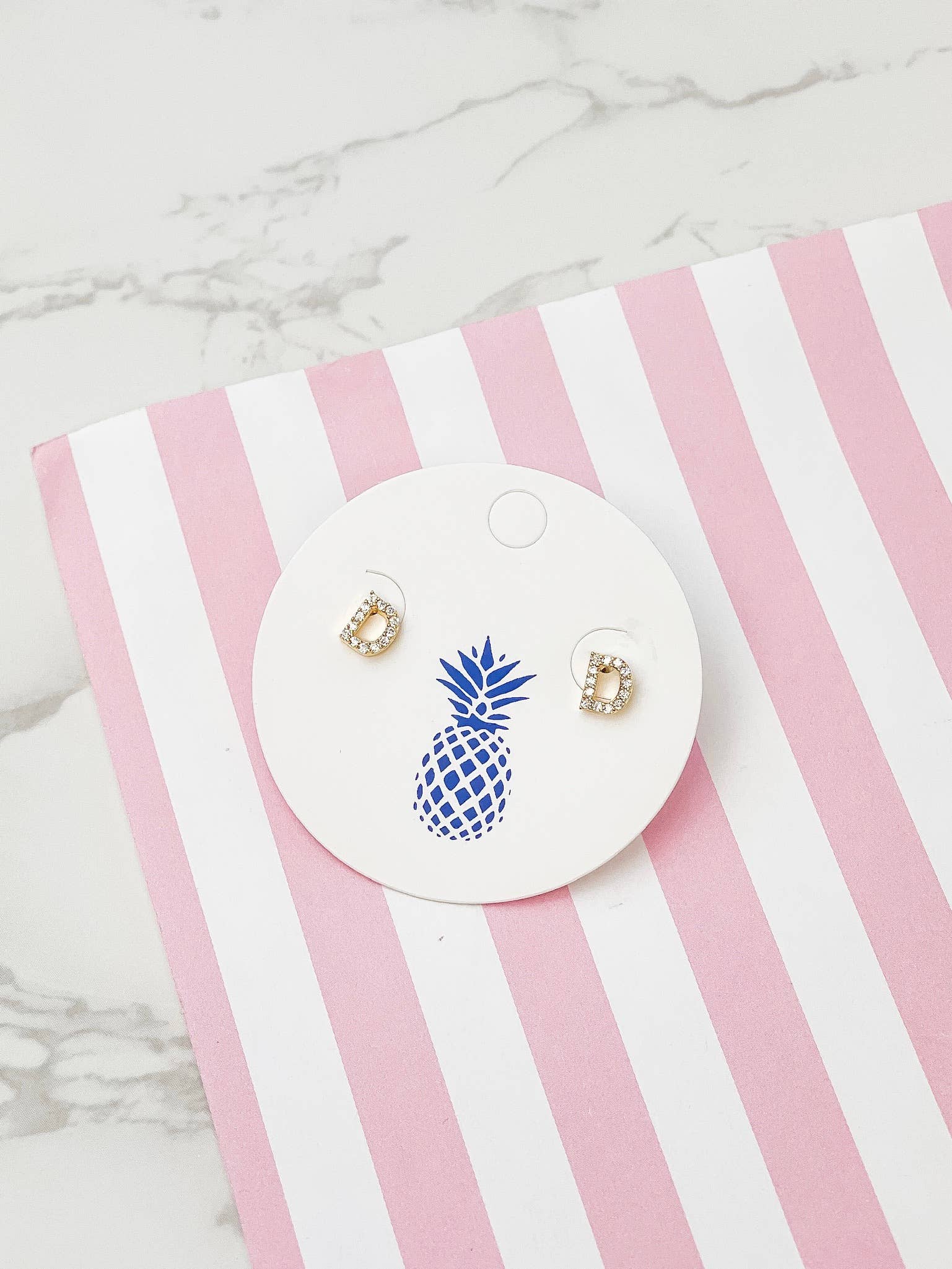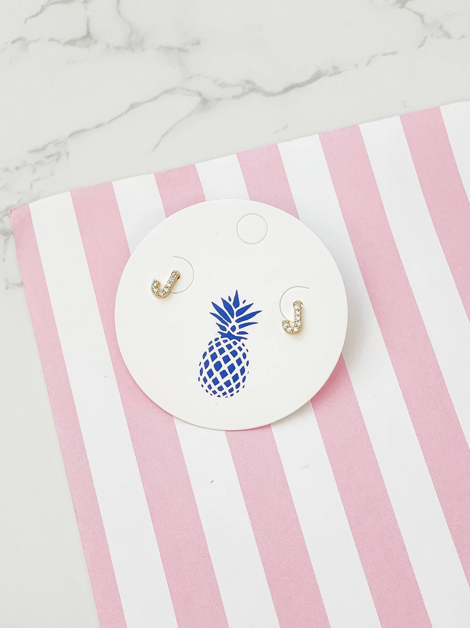 From the house of Prep Obsessed Wholesale, we bring to you our Cubic Zirconia Initial Stud Earrings in Gold. These studs, crafted from sterling silver, are adorned with cubic zirconia for that extra sparkle. With a comfortable size of 0.25", these earrings make a subtle yet impactful style statement. Perfect for adding a personalized touch to your ensemble, these earrings are a must-have addition to your jewelry collection.