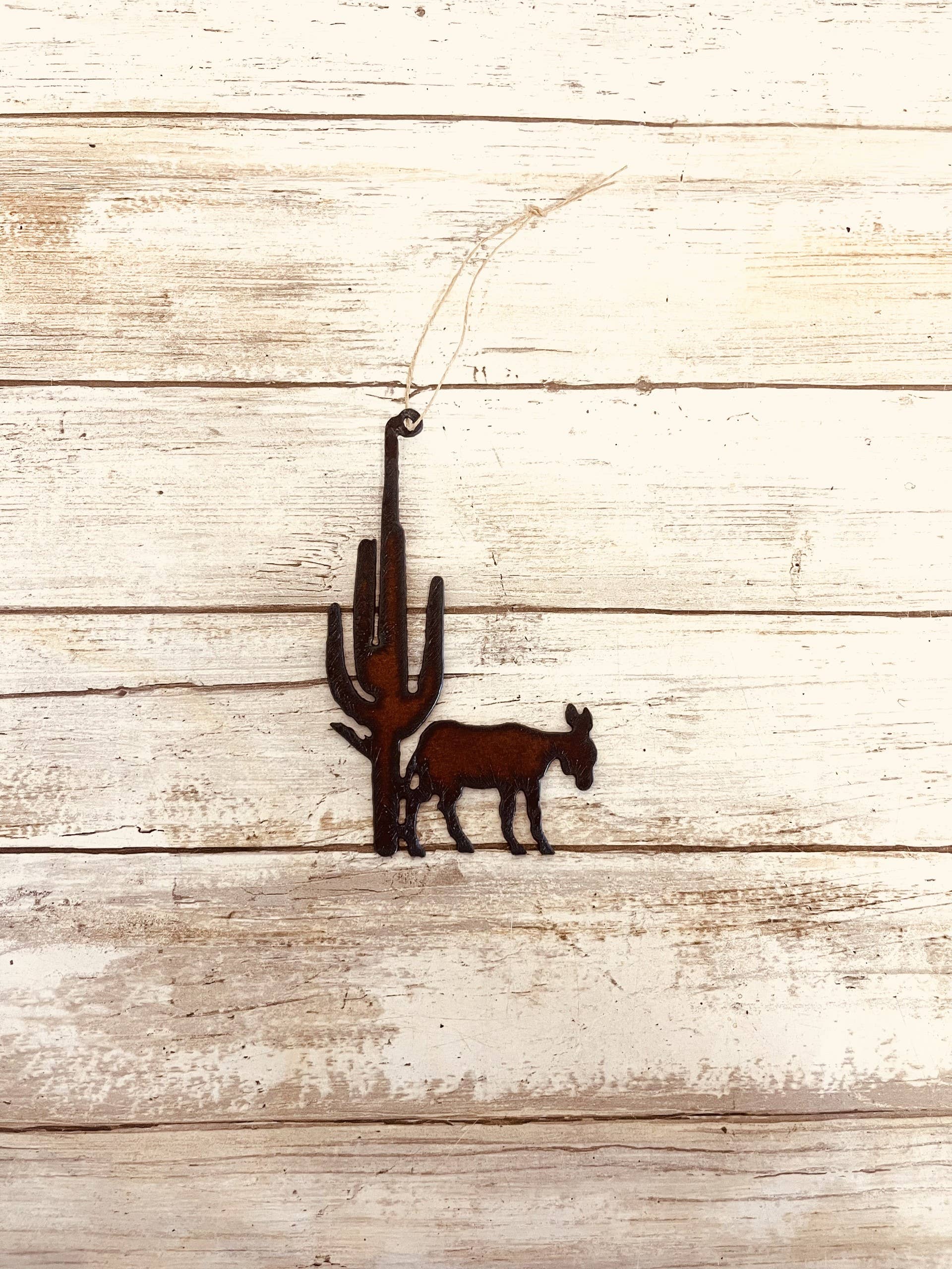 Donkey and Cactus Desert Ornament Rustic Metal Burro Gift