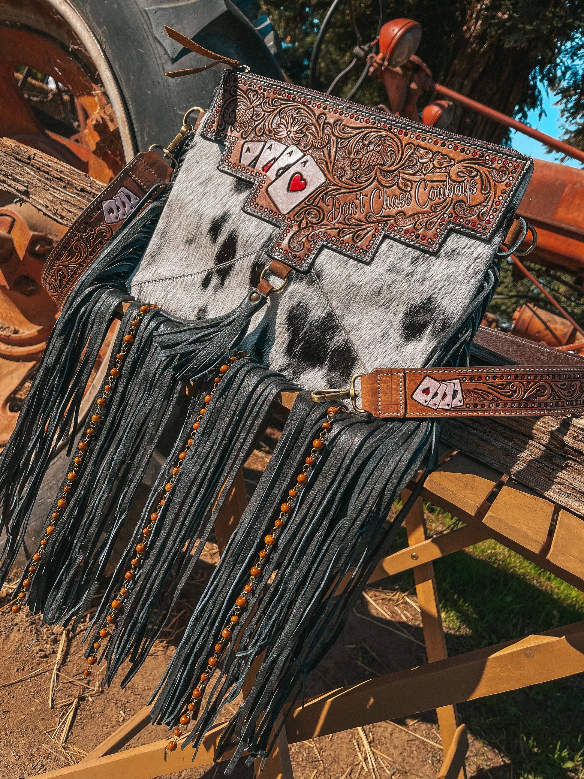 Don't Chase Cowboys Aces Cards Cowhide Purse Haute Southern