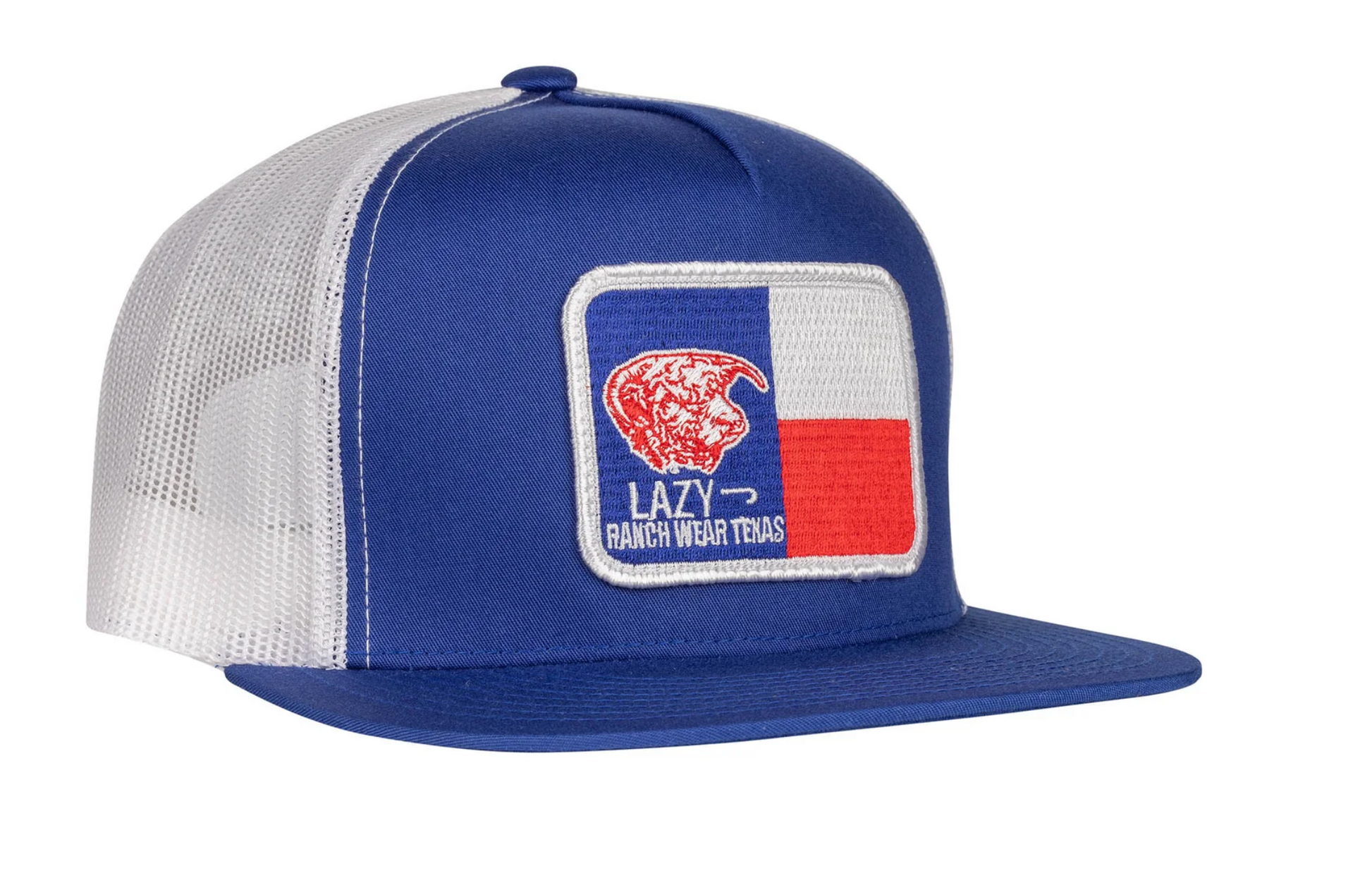 LAZY J RANCH BLUE & WHITE TEXAS ELEVATION CLASSIC FIVE PANEL TRUCKER HAT