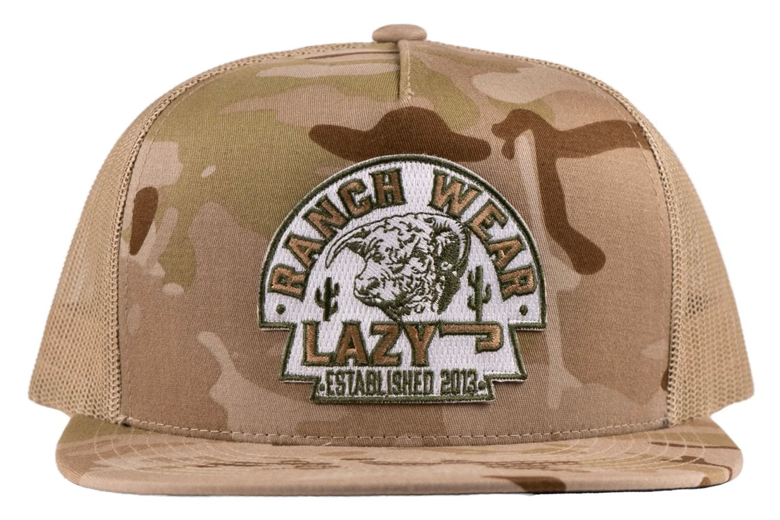 LAZY J RANCH CAMO OLIVE ARROWHEAD CLASSIC FIVE PANEL TRUCKER HAT