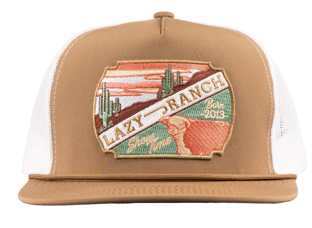 LAZY J RANCH COYOTE BROWN & WHITE DESERT SHOW TIME CLASSIC ROPE TRUCKER HAT