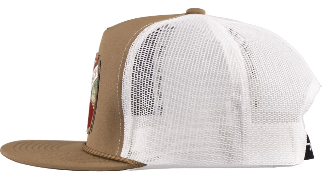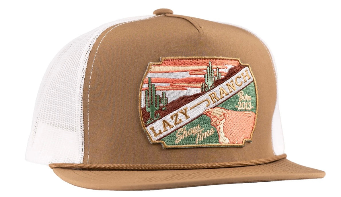 Introducing the Lazy J Ranch Wear Coyote Brown & White Desert Show Time Classic Rope Trucker Hat, the perfect blend of rugged Western style, neutral colors and bold desert symbols. Built with a cotton rope, this 5-panel trucker hat features breathable comfort, and a classic trucker hat silhouette with a high profile crown.