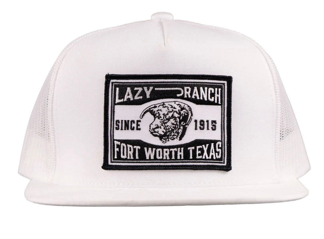 LAZY J RANCH WHITE FORT WORTH CLASSIC ROPE TRUCKER HAT