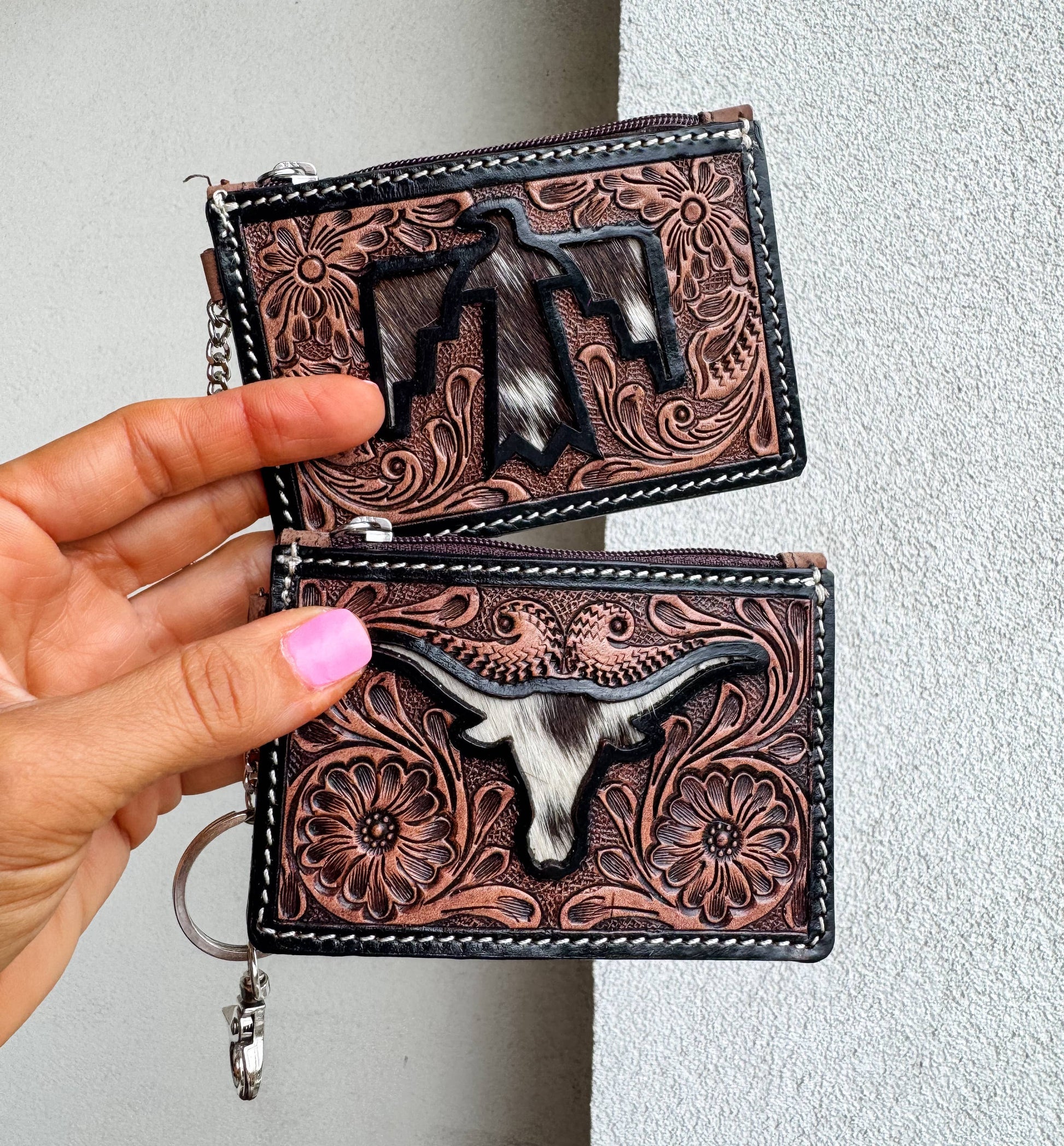 How cute are these genuine hair-on cowhide keychain wallets! These make GREAT gifts!