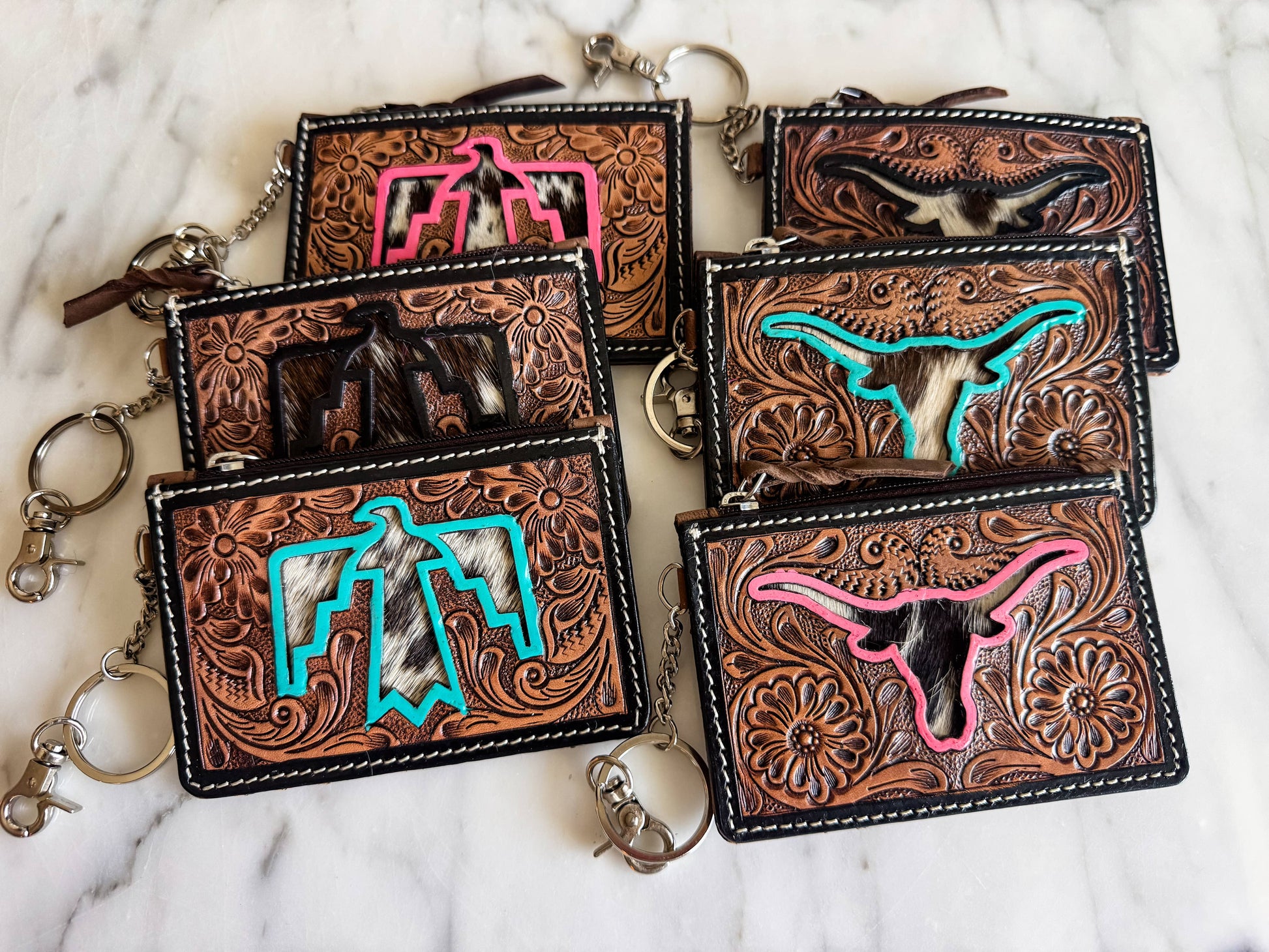 Longhorn Freebird Western Cowhide Leather Keychain Wallet: LONGHORN OR THUNDERBIRD