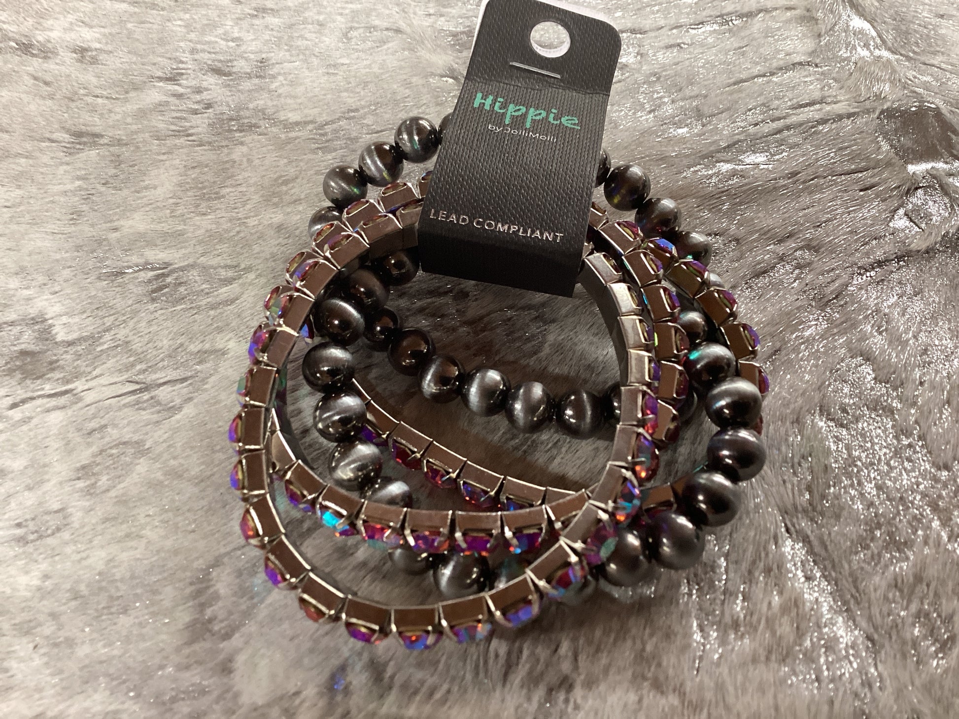 Pink stone stretchy bracelet w/grey stretchy bracelets