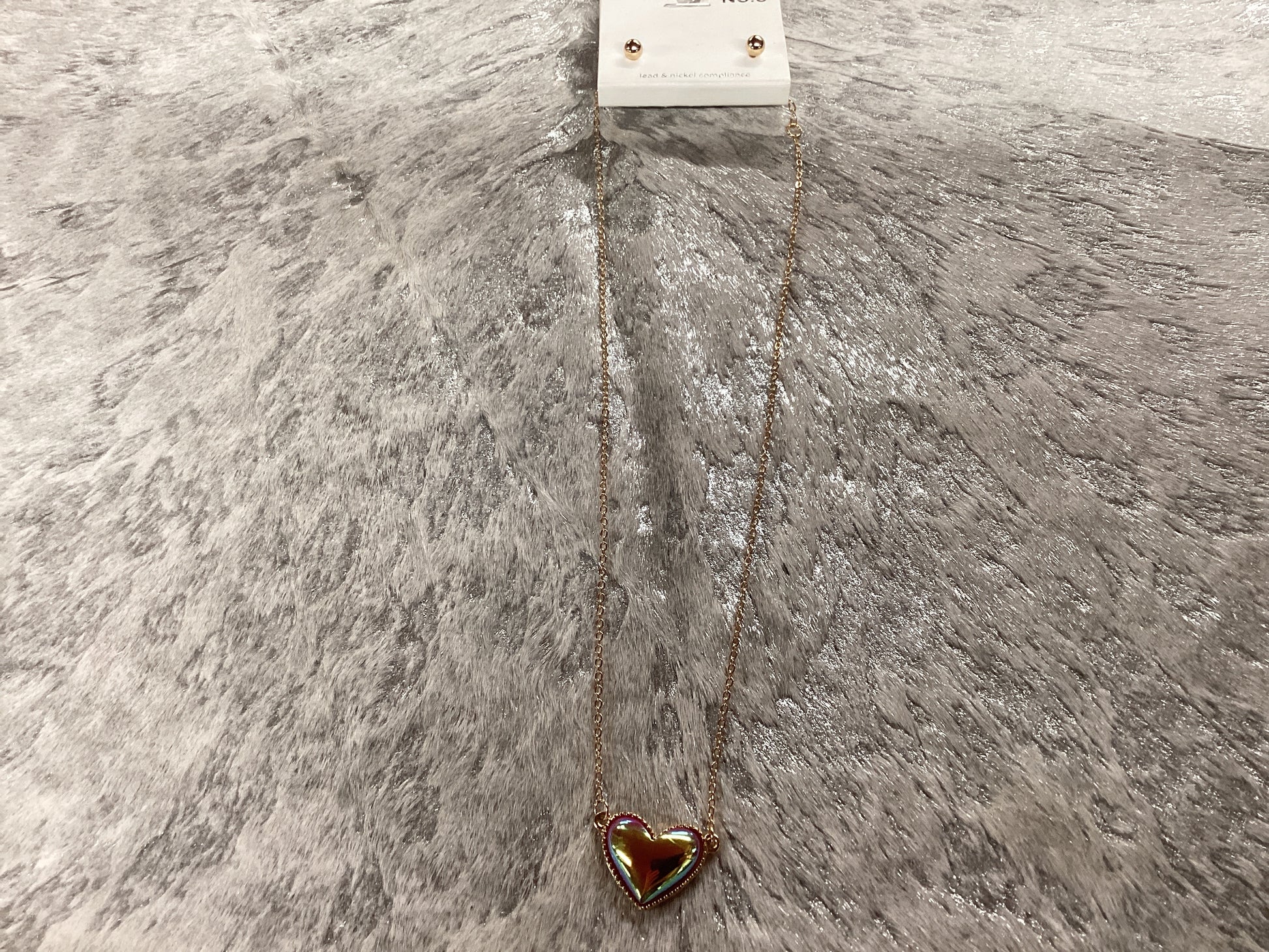 Red heart stone on rose gold chain w/earrings