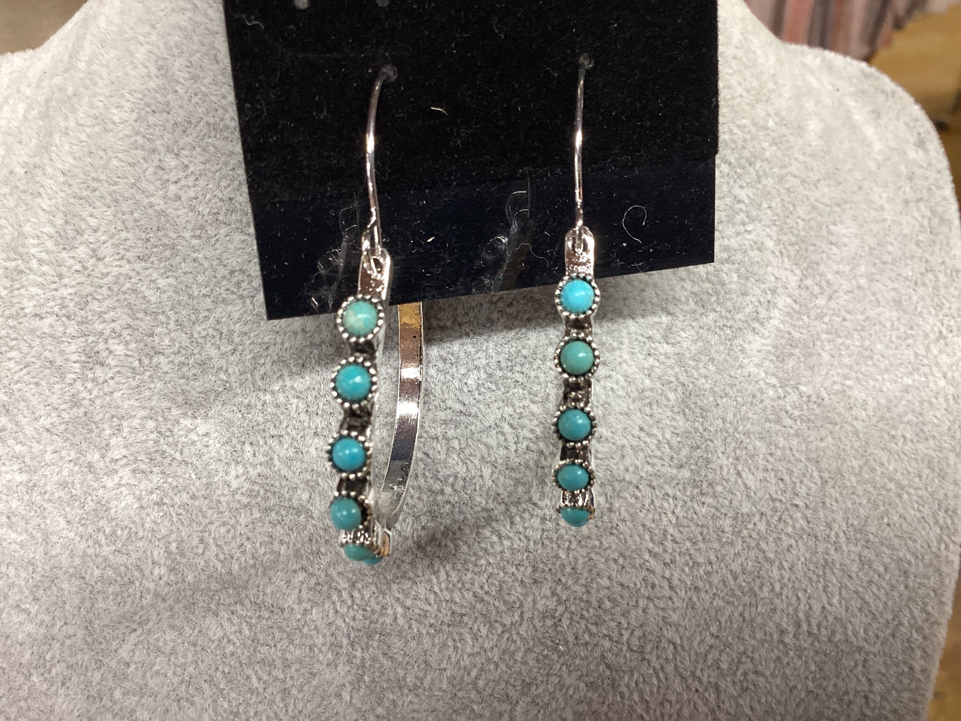 Silver Hoop Earrings W/Turquoise