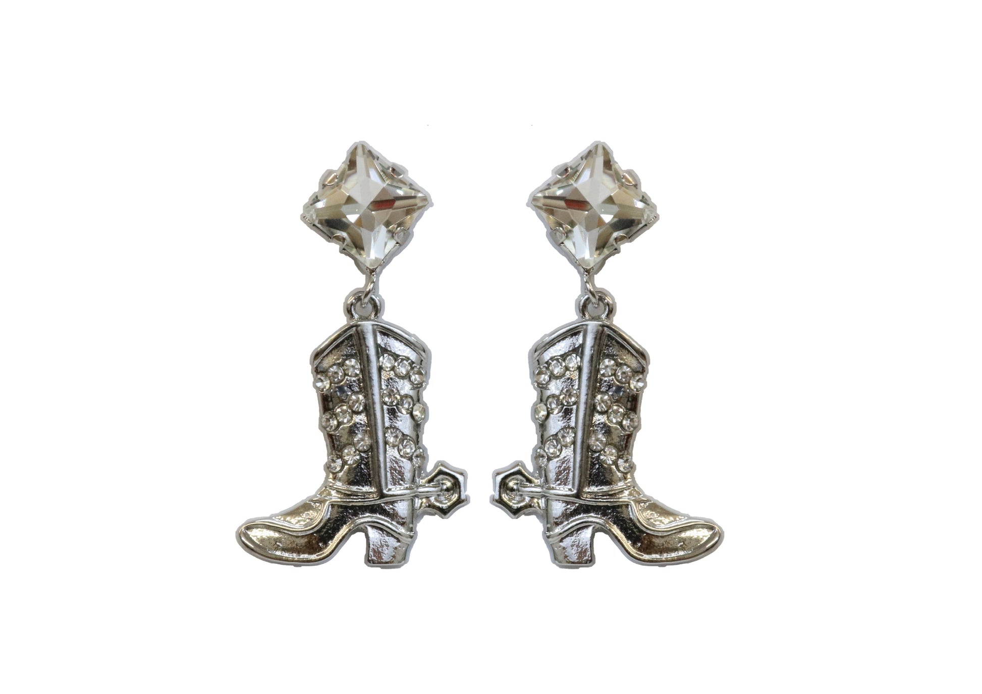Silver Rhinestone Cowboy Boot Earring on Rhinestone Post West Co
