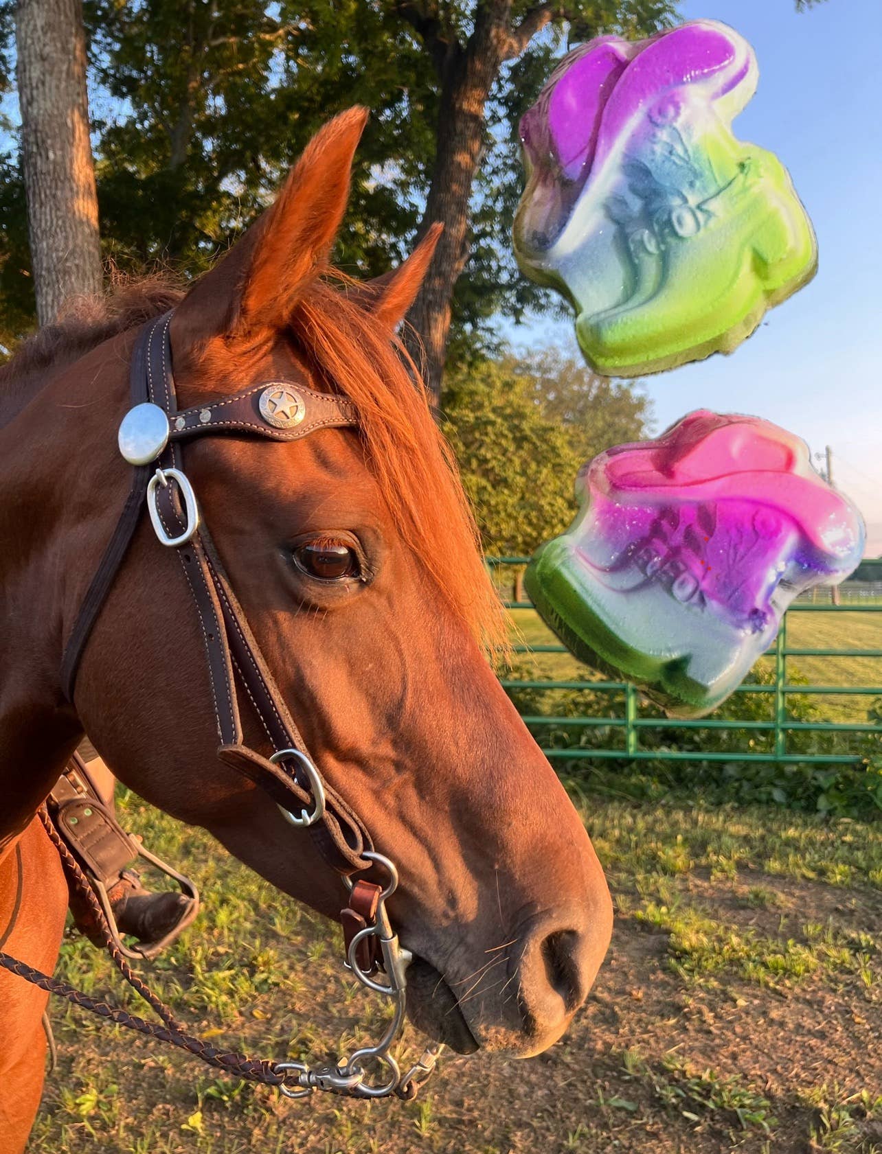 *Horse not included ☺️ These super cute bath bombs are airbrushed and have colored embeds inside! They are scented in my new in house fragrance Southern Diva! Rich in notes of chocolate and citrus with undertones of soft florals that is sure to be a crowd favorite 😍 Each bomb is made with a generous amount of Cocoa Butter & Coconut Oil that will leave your skin silky smooth but never oily😍 And my bath bombs will never stain you or your tub!! Each bomb is handmade with love in small batches which ensures quality but also means no two are exactly the same!