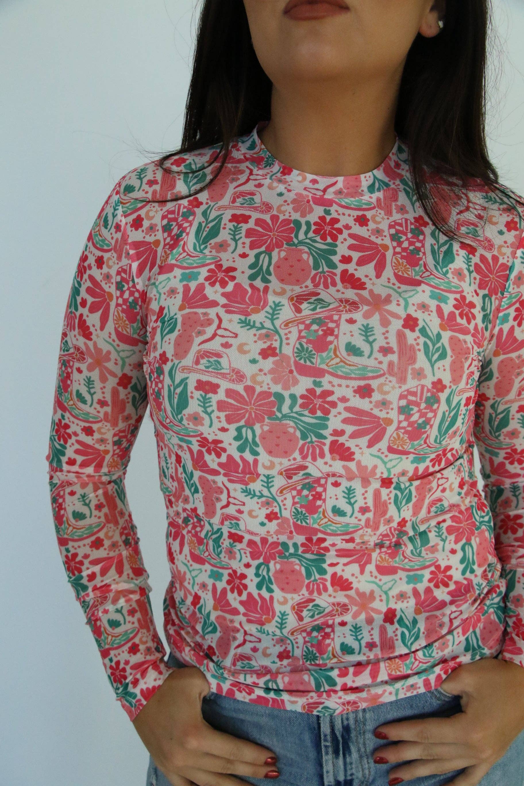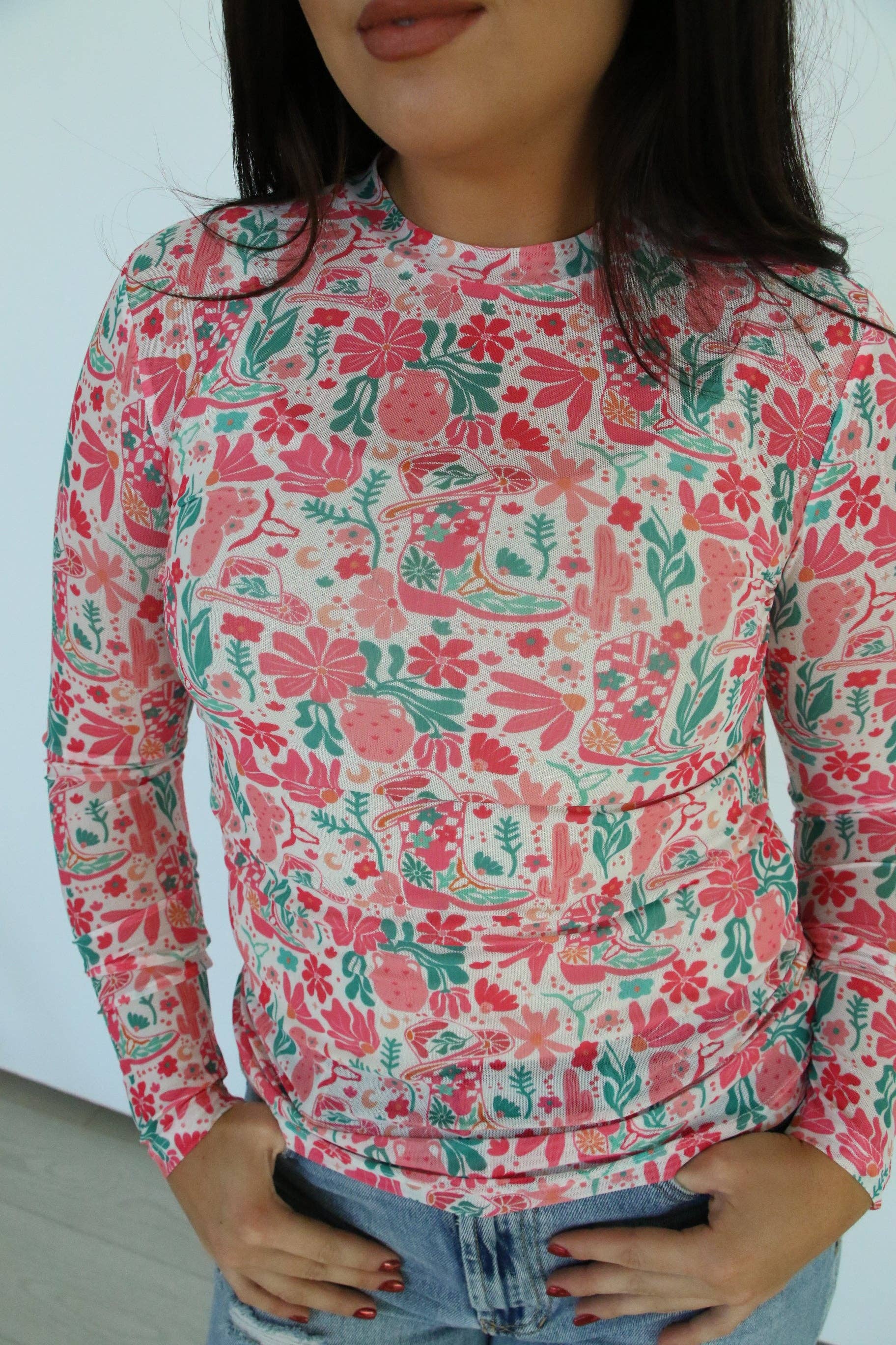 TH1221 PINK BOOT BOHO MESH TOP Turquoise H