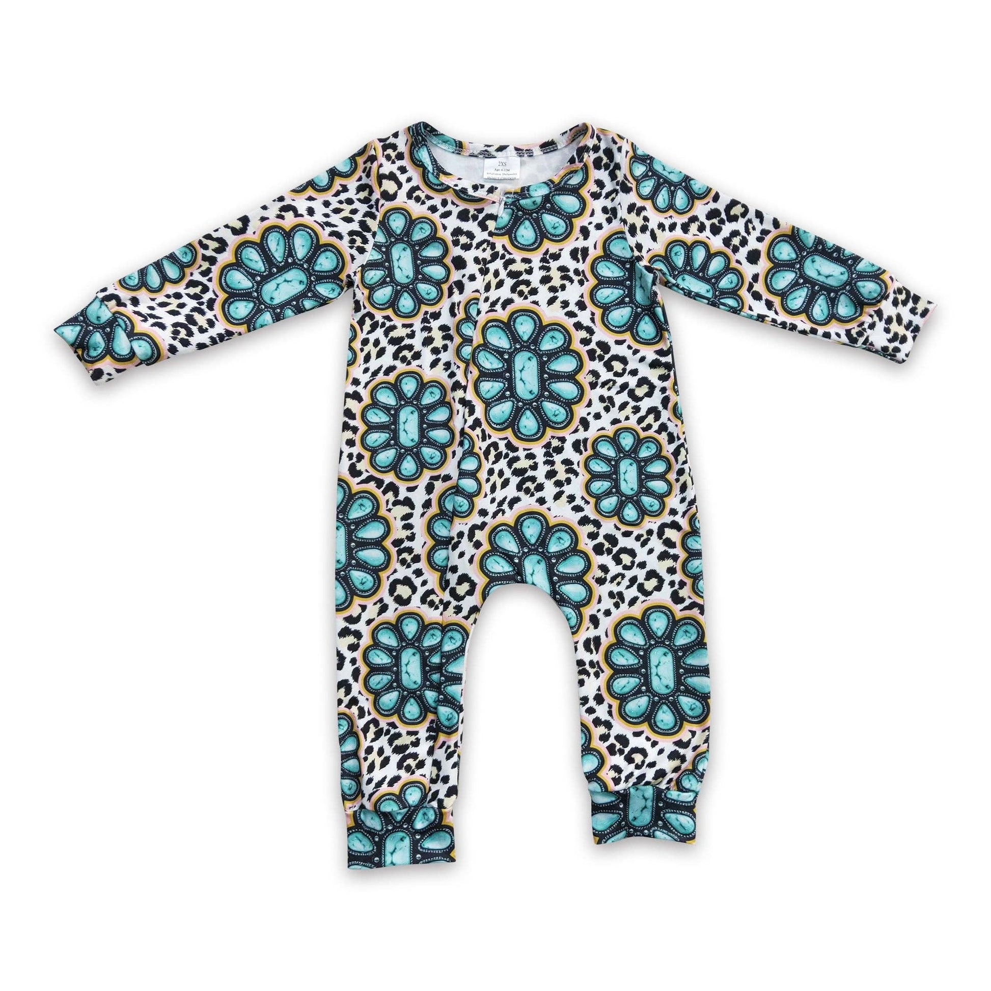 Turquoise leopard baby kids western footed zipper coverall: Yawoo