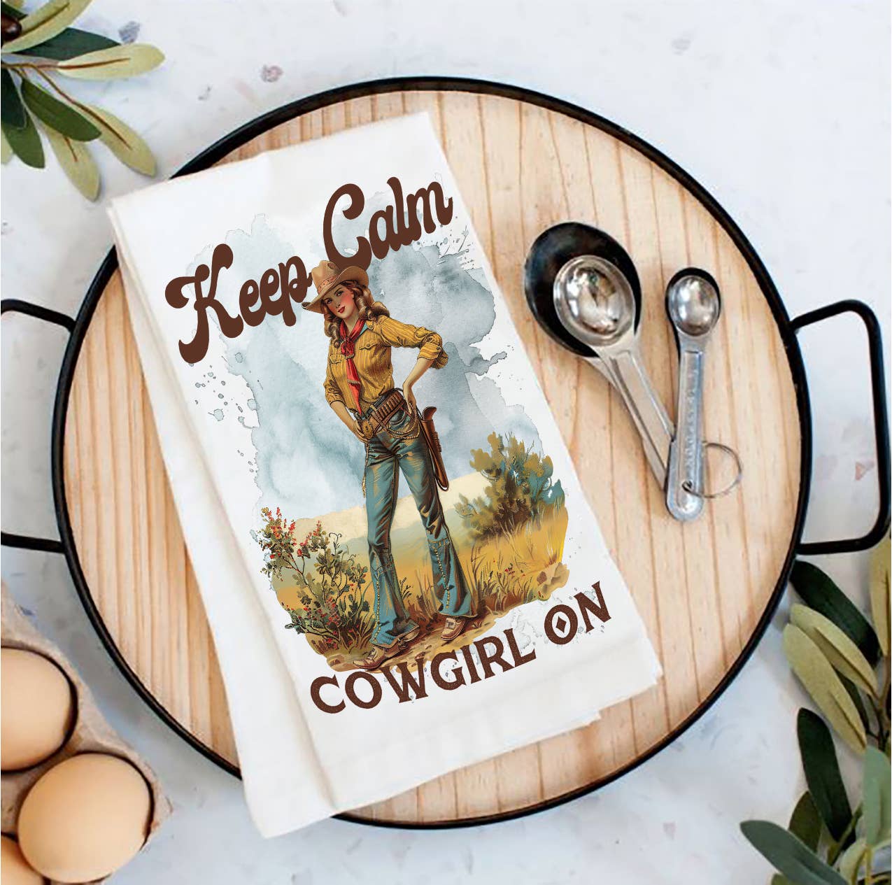 Vintage Cowgirls Keep Calm Cowgirl On Tea Towel
