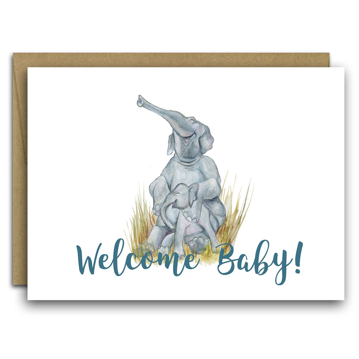 Welcome baby, baby elephant, elephants, Baby Shower, Baby Card, New Mom, New Dad, New Parents, First Baby