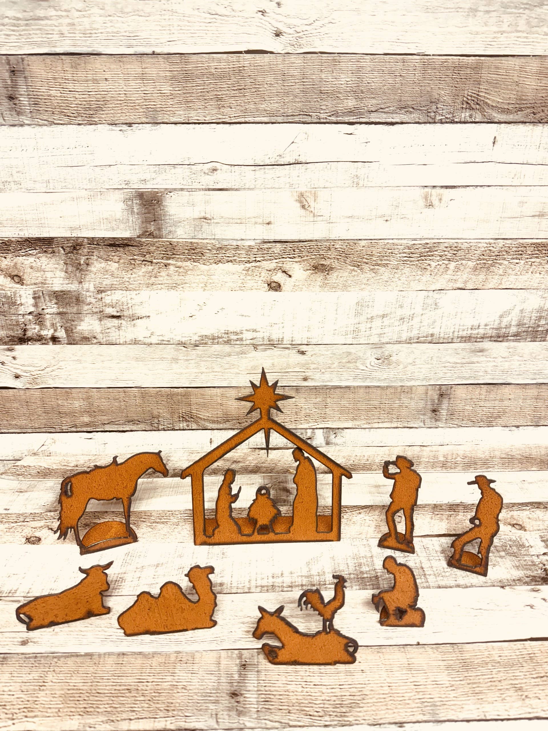 WESTERN Nativity LARGE Size 8 Piece Scene Christmas Holiday Ironwork