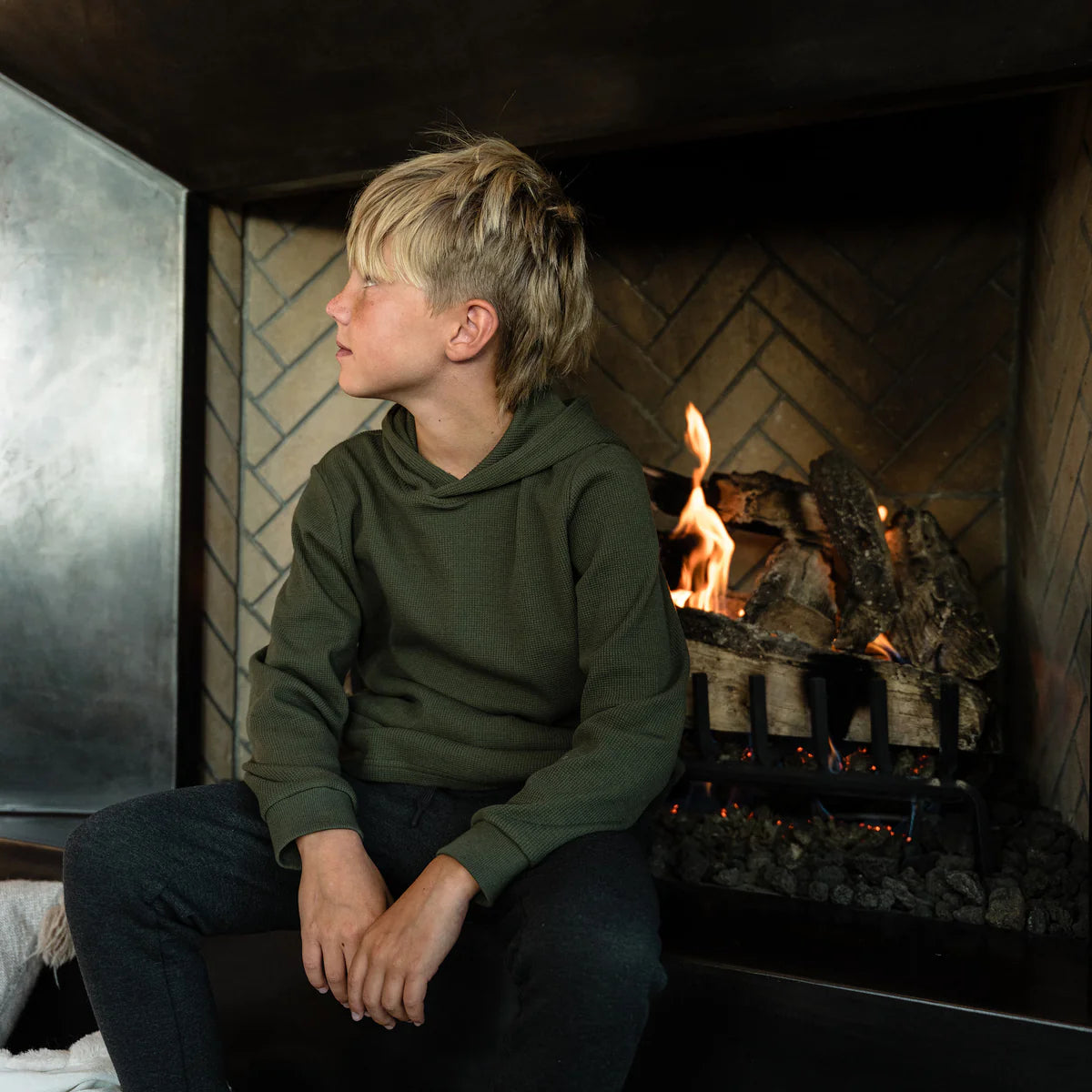 Thermal Hoodie from the Fall 25' Collection, crafted from a soft cotton blend with a waffle knit texture for breathable warmth. Designed to be worn on its own or layered up, it features a relaxed fit and easy pullover hood for everyday comfort.